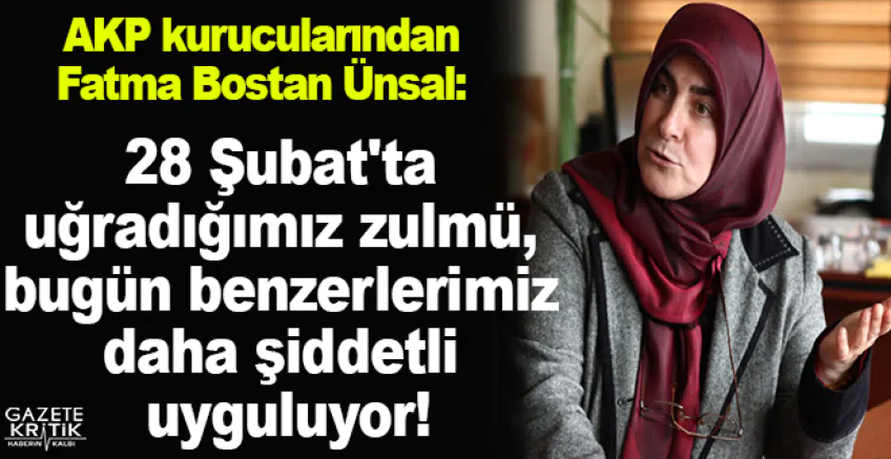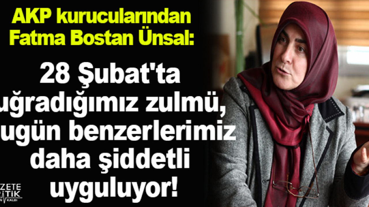 AKP’nin kurucularından Fatma Bostan Ünsal, iktidarın bugünkü politikalarını eleştirerek, "28 Şubat döneminde iyi kötü savunmamızı yapabiliyorduk, bugün o da yapılamıyor. OHAL mağdurları için bir ay içinde komisyon kurulacaktı, iki aydan fazla süre geçti kurulmadı" dedi. Ünsal, “28 Şubat darbesinde baskıya uğrayanlar olarak, o dönemde yaşadığımız zulmün, bugün benzerlerimiz tarafından daha şiddetli bir şekilde tüm topluma uygulanması, getirilmek istenen sistemle yapılabilecekler açısından ibret vericidir" ifadesini kullandı.