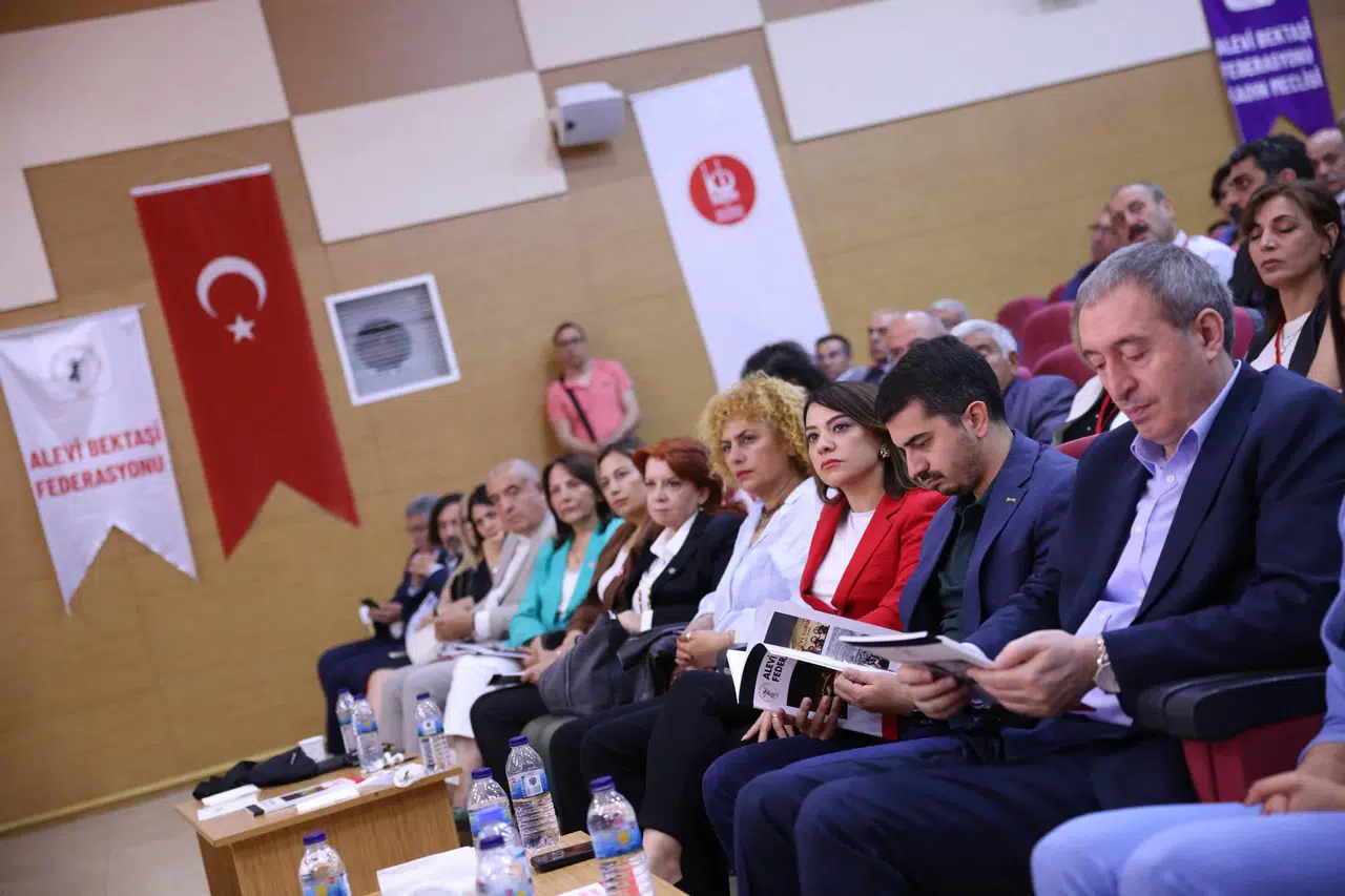 "Bugün Sosyalist İnternasyonel Toplantısı nedeniyle İstanbul'da olduğu için Sayın Genel Başkanımız burada olamadı ama kendisinin de selamlarını da iletmek isterim. Bugün burada sadece Alevi Bektaşi Federasyonu'nun genel kurulunu gerçekleştirmiyoruz. Hem geçmişi değerlendiriyor hem geleceği şekillendiriyor ve bundan sonraki süreçte de nasıl bir arada omuz omuza dayanışma içerisinde yol alabiliriz, onun değerlendirilmesini yapılıyor. İnancımız yüzyıllardır Anadolu topraklarında dünyanın dört bir yanında barışın, sevginin, hoşgörünün adeta temsilcisinin niteliğinde. Bizler 'Kabem insandır' demiş bir yolun yolcusuyuz. Hünkar Hacı Bektaş-ı Veli'nin kadın erkek birdir muhabbetin dilinde şiarından Pir Sultan'ın direnişine Nesmi'nin cesaretinden nice erenlerin irfanı bizlere çağlar ötesinden seslenmekte. Bizler bu ulu çınarın köklerinden, İmam Ali'nin adaletinden, Ehl-i Beyt'in sevgisinden ve on iki imamın yolundan beslenen bir inancın mensuplarıyız. Cemlerimizdeki birlik ruhu, muhabbetlerimizdeki samimiyet ve insana verilen değer Alevi-Bektaşi öğretisinin temel direğidir. O yüzden baskı kurmaya, o yüzden 1400 yıldır zulümle abat olmaya çalışıyorlar. Ama gelin görün ki hala başarılı olamadılar ve başarılı olamayacaklar."