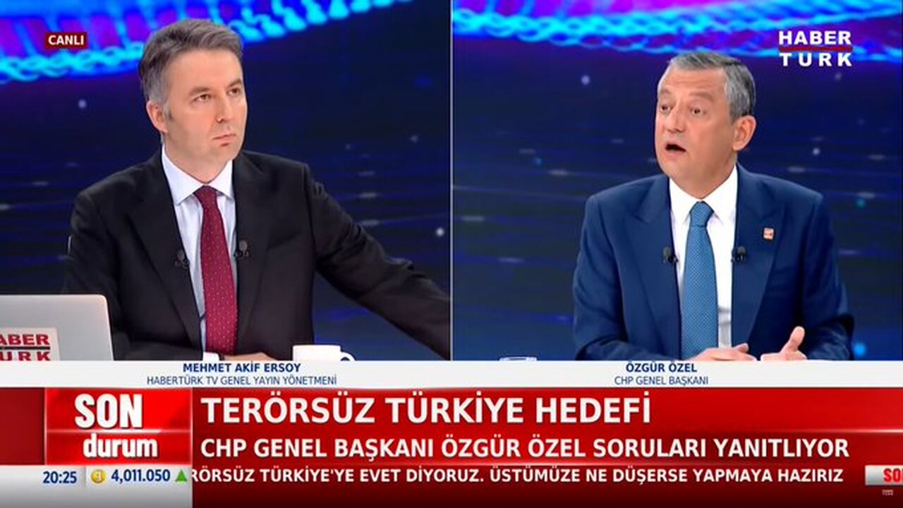 CHP Genel Başkanı Özgür Özel, HaberTürk TV'de katıldığı programda, "Ülkenin Cumhurbaşkanı ya da ülkenin 5'inci partisinin Genel Başkanı Sayın Bahçeli dön dolaş CHP'yle, genel başkanıyla, cumhurbaşkanı adayıyla bu kadar meşgullerse, CHP açısından işler yolunda gidiyor demektir. 31 Mart tarihinden itibaren Türkiye'de iktidar ile muhalefet yer değiştirdi. CHP, şu anda siyasetin iktidar partisi" ifadesini kullandı. Özel, bir soru üzerine anketlerde partisinin yüzde 40'a dayandığını belirterek, partisinin Cumhurbaşkanı adayı Ekrem İmamoğlu'nun gözaltına alınmasıyla ilgili süreci kastederek, "Biz bu süreçten güçlü çıkmış olabiliriz ama ben bu sürecin kendisini yanlış buluyorum" dedi. Özel, terör örgütü PKK'nın kendini feshettiğini açıklamasının ardından yaşananların ardından partisinin görüşünün sorulması üzerine, şunları kaydetti: