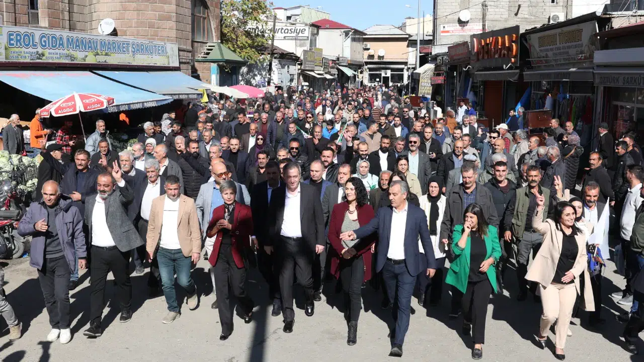 "Sizin seçtiğiniz iradeyi artık kimse yok saymayacak, iradenize kayyım atanmayacak. Kendi dilimizle çocuklarımız öğrenim görecek, dilimizin asimile edilmesi duracak. Kürtlerin geçmişi ve kahramanlıkları da tarih kitaplarında yer alacak. Sayın Öcalan'ın deyimiyle eşit yurttaş olacağız, Cumhuriyetin ortağı olacağız, bu cumhuriyeti demokratikleştirerek birlikte yaşayacağız. O günler uzak değil. Çok önemli bir süreç yürütüyoruz. DEM Parti olarak bu sürecin bir tarafıyız. Bütün samimiyetimizle bu süreç ilerlesin diye elimizden geleni yapıyoruz. Binlerce toplantı, binlerce buluşma yaptık. Karadeniz'den tutalım Marmaris'e kadar... Biz bütün samimiyetimizi ortaya koyduk. Şimdi samimiyet sırası iktidarda ve devlette.”
