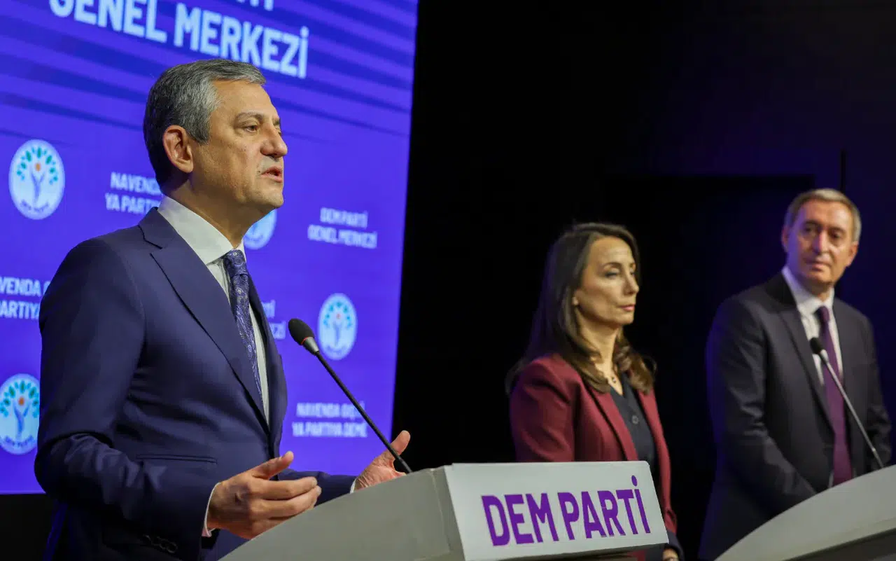 CHP Genel Başkanı Özgür Özel, DEM Parti’yi ziyaret ederek Eş Genel Başkanlar Tülay Hatimoğulları ve Tuncer Bakırhan ile bir araya geldi. Görüşmenin ardından düzenlenen ortak basın toplantısında konuşan Tülay Hatimoğulları, açıklamasına 6 Nisan Öldürülen Gazeteciler Günü dolayısıyla hayatını kaybeden gazetecileri anarak başladı. Ardından hem Türkiye’nin iç gündemine hem de bölgesel gelişmelere ilişkin değerlendirmelerini paylaştı.