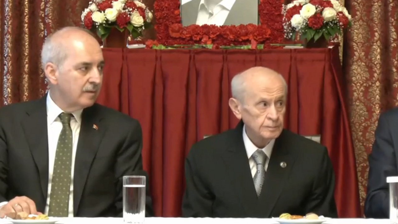 Burada DEM Parti Eş Genel Başkanları Tülay Hatimoğulları ve Tuncer Bakırhan, Grup Başkanvekilleri Sezai Temelli ve Gülistan Kılıç Koçyiğit, Antalya Milletvekili Saruhan Oluç ve Sırrı Süreyya Önder'in abisi Ali Önder ile DEM Parti Grubu'na başsağlığında bulunan Bahçeli, kendisindan önce taziye ziyaretine gelen TBMM Başkanı Numan Kurtulmuş ile yan yana oturdu ve DEM Partililerle bir süre sohbet etti.