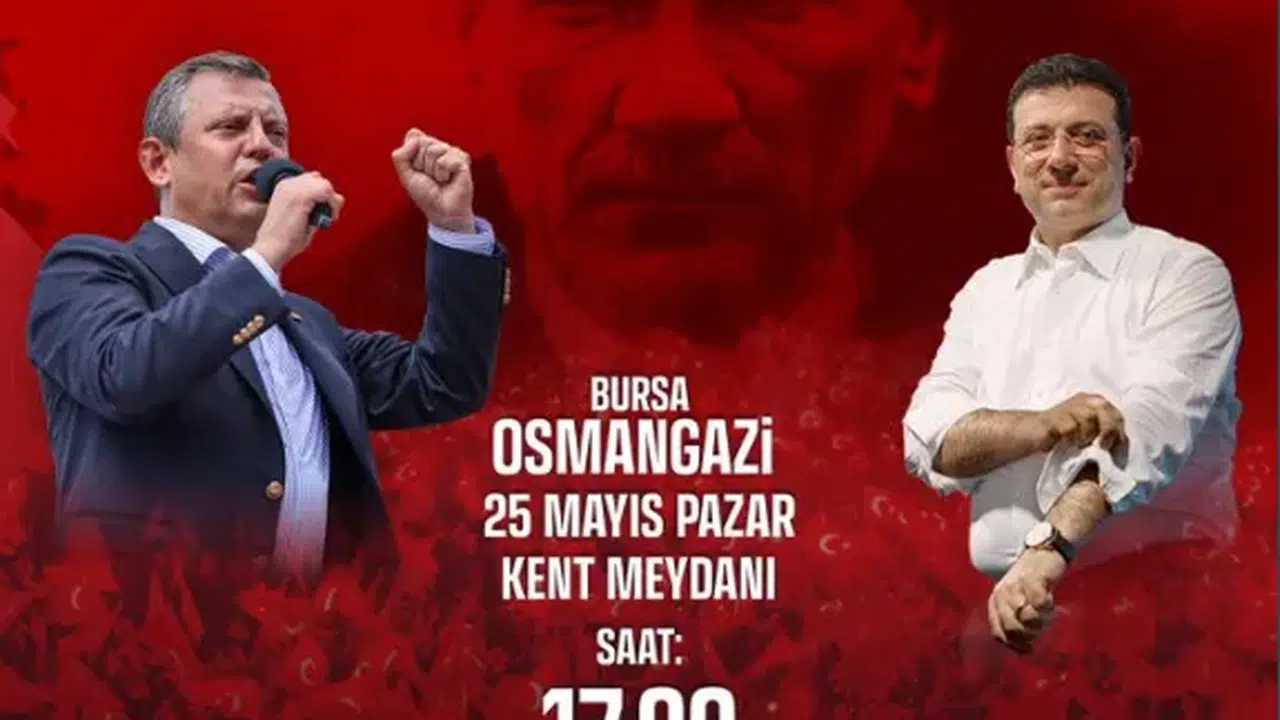 Paylaşımda, "Bursa vicdanıyla yürür. Haksızlığın karşısında saf tutar. İşte tam da bu yüzden, Bursa’nın sesi Türkiye’ye umut olur. Genel Başkanımız Sayın Özgür Özel’in katılacağı buluşmaya Bursalı tüm dostları davet ediyorum. 25 Mayıs Pazar 17.00 Bursa Osmangazi Kent Meydanı" ifadelerine yer verildi.