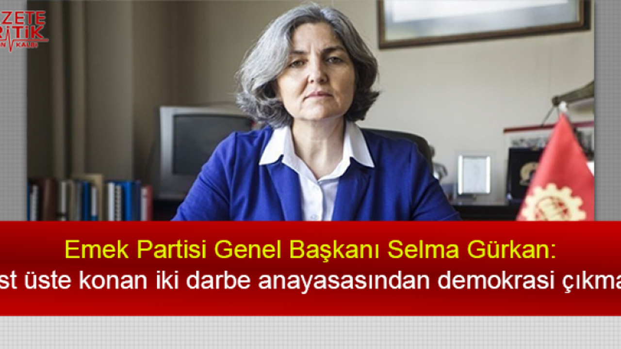 Emek Partisi Genel Başkanı Selma Gürkan, 16 Nisan'daki anayasa değişikliği referandumuyla ilgili "Üste konan iki darbe anayasasından demokrasi çıkmaz" yorumunda bulundu. Hükümetin, referandum sürecinde 'rejimin değil hükümet sistemi değişikliği öneriyoruz" söylemini öne çıkardığını belirten Gürkan, "Türkiye’nin politik sisteminde önemli değişiklikler yapılmak isteniyor. Referandumda evet ya da hayır demeyi, demokratik haklar ve siyasal özgürlükler açısından tartışmamız gerekiyor." değerlendirmesinde bulundu.
