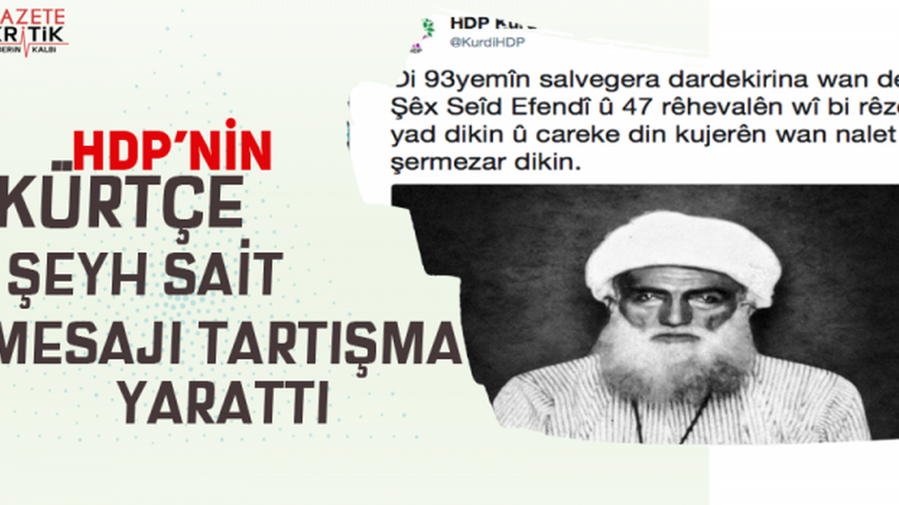 HDP, Türkiye Cumhuriyeti'ne karşı başkaldırdığı için idam edilen Şeyh Sait’i ölüm yıldönümünde Twitter hesabından Kürtçe bir mesajla andı. HDP Genel Merkezi’nin Twitter hesabından Türkçe mesaj yayınlanmaması ise dikkat çekti.