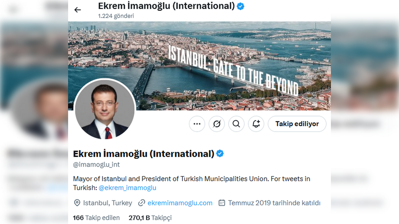 Silivri’deki Marmara Cezaevi’nde tutuklu bulunan İmamoğlu adına daha önce sosyal medya hesapları üzerinden düzenli olarak açıklamalar yapılıyordu. Ancak yaşanan erişim engeli sonrası, İmamoğlu’na yakın kaynaklardan yapılan açıklamada, bundan sonraki duyurular ve paylaşımlar için İngilizce dilindeki @imamoglu_int hesabının aktif olarak kullanılacağı bildirildi.