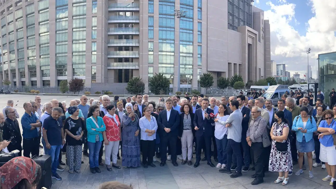 CHP İstanbul İl Başkanı Özgür Çelik ve DEM Parti Eş Genel Başkan Yardımcısı Mehmet Rüştü Tiryaki, 10 kişinin yargılandığı "Kent Uzlaşısı" davası öncesinde Çağlayan’daki İstanbul Adliyesi önünde açıklama yaptı. Çelik, “86 milyon yurttaş olarak Türkiye’nin doğusundan batısına, kuzeyinden güneyine hep birlikte yaşıyoruz. İstanbul 16 milyonluk bir metropol, İstanbul Türkiye’nin dört bir yanından insanların birlikte yaşadığı, birlikte ürettiği bir kent ama İstanbul’da Kürtlerin batı illerinde söz sahibi yapılması, yerel yönetimlerde söz sahibi yapılması ifadeleriyle arkadaşlarımız tutuklandı... Türkiye’nin siyasi yelpazesinin neredeyse bütününün kardeşliği, barışı, demokrasiyi konuştuğu bir dönemde bu uygulamaların bir an önce ortadan kaldırılması gerekir” dedi. Tiryaki de “Bu hukuksuzluk değil, açıkça Kürt düşmanlığıdır, Kürt’ün iradesinin yok sayılmasıdır” diye konuştu.