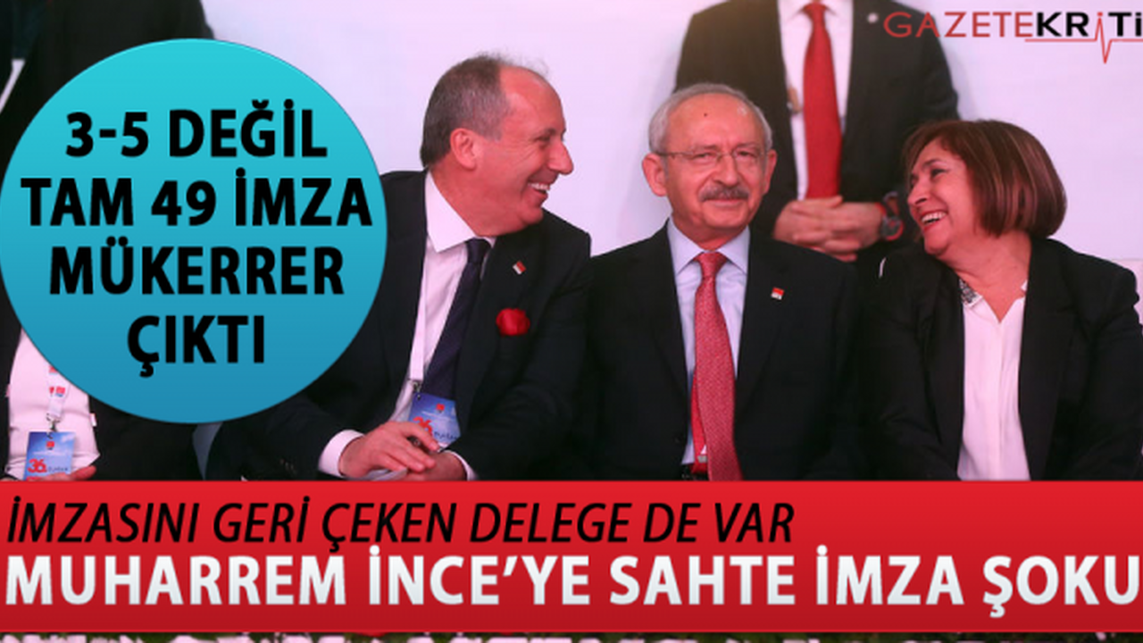 14.51 Muharrem İnce'nin adaylığı için imza veren delegelerin bir kısmının mükerrer imza attığı, iki delegenin ise İnce için verdiği imzayı gere çektiği ortaya çıktı. 166 imzadan 49'unun mükerrer çıkması durumunda İnce'nin aday olamama ihtimalinden bahsediliyor. Peki mükerrer imza nedir? Yani bazı delegelerin hem Muharrem İnce'nin adaylığı hem de bir başka adayın adaylığı için imza verdiği anlamına geliyor. Bu 49 imzanın geçersiz sayılması durumunda, iki delegenin de imzasını geri çekmesi nedeniyle İnce'nin topladığı imza sayısı 115'e düşebilir ve Muharrem İnce'nin adaylığı geçersiz hale gelebilir.