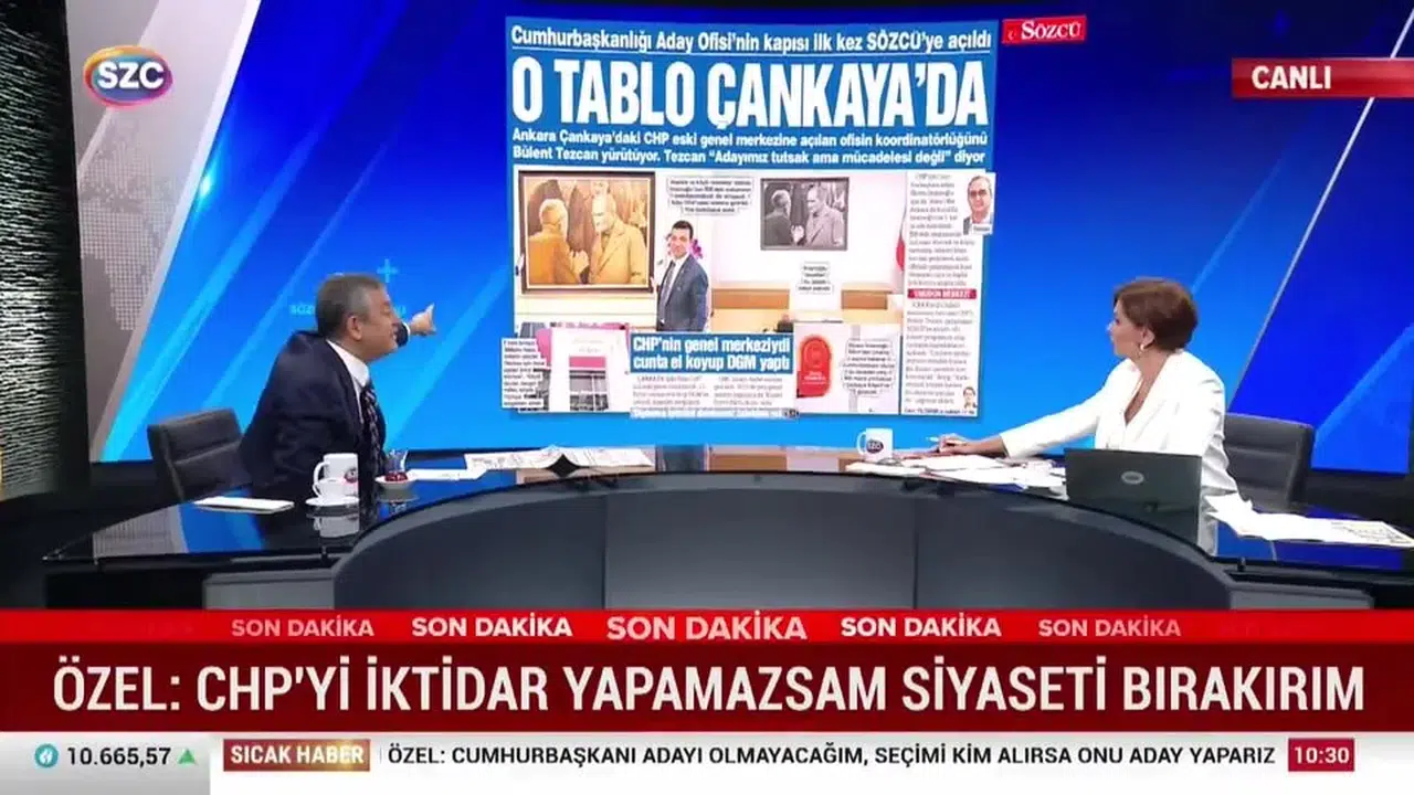 CHP Lideri Özgür Özel, SZC TV'de gazeteci Özlem Gürses’in sorularını yanıtladı. Gürses'in "Çankaya İlçe Başkanı'nı görevden aldınız mı" sorusuna Özel, şöyle yanıt verdi: