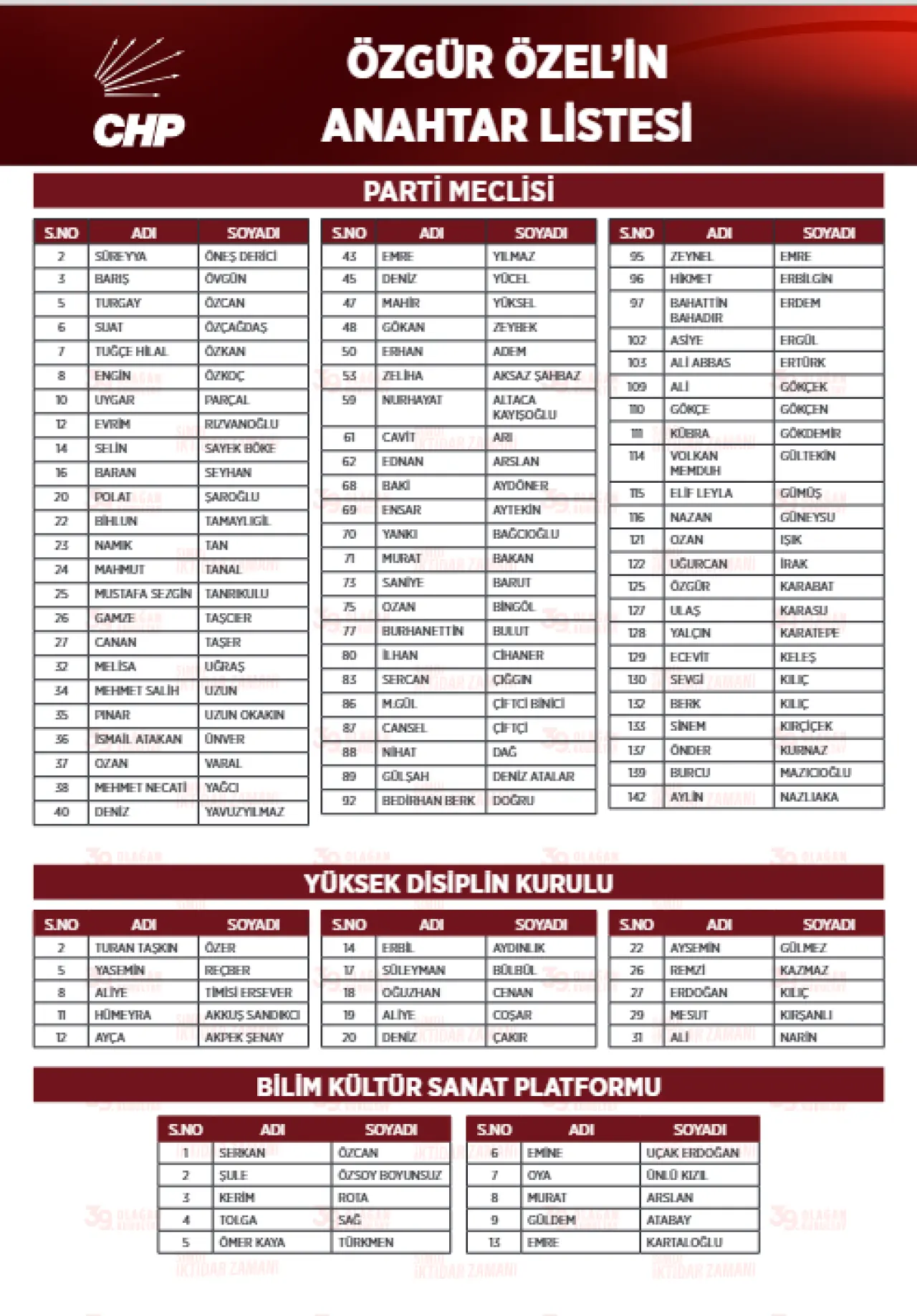 CHP lideri Özgür Özel'in anahtar listesi belli oldu.