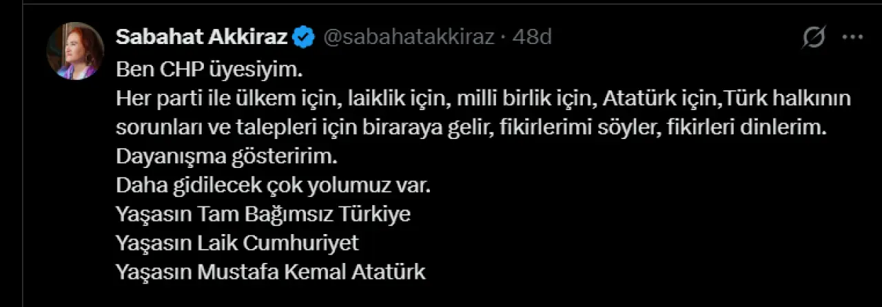 Akkiraz sosyal medya üzerinden İYİ Parti'ye geçecek yorumları üzerine bir tweet paylaştı.