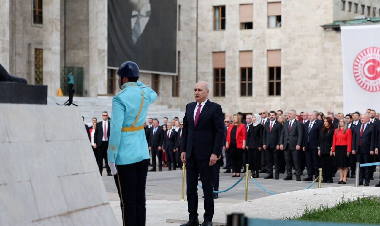 TBMM Başkanı Numan Kurtulmuş, 23 Nisan Ulusal Egemenlik ve Çocuk Bayramı ile TBMM’nin açılışının 105. yıl dönümü kutlamaları kapsamında Meclis’teki Atatürk Anıtı'na kırmızı-beyaz karanfillerden oluşan çelenk bıraktı.