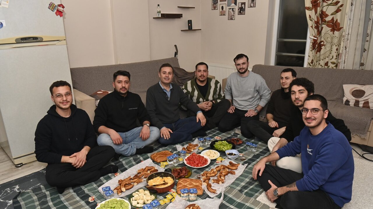Balıkesir Büyükşehir Belediye Başkanı Ahmet Akın, Balıkesir Üniversitesinde öğrenim gören Makina Mühendisliği son sınıf öğrencisi Üzeyir Acaroğlu ve Uluslararası Ticaret ve Lojistik Bölümü son sınıf öğrencisi Buğra Yılmaz’ın öğrenci evine misafir oldu. Öğrencilerle, samimi ve sıcak bir ortamda sohbet gerçekleştiren Akın, daha sonra onlarla birlikte mutfağa girerek öğrencilere kendi elleriyle sucuk ve yumurta pişirdi. Yemek yaparken gençlere, üniversite anılarından da bahseden Akın, Balıkesir’i öğrenci dostu şehir yapma yolunda emin adımlarla ilerlediklerini söyledi. Yer sofrasında sahur yapan Akın, Ulu Önder Gazi Mustafa Kemal Atatürk’ün geleceği emanet ettiği gençlerle birlikte olmaktan mutluluk duyduğunu belirtirken öğrencilere davetlerinden dolayı teşekkür etti.