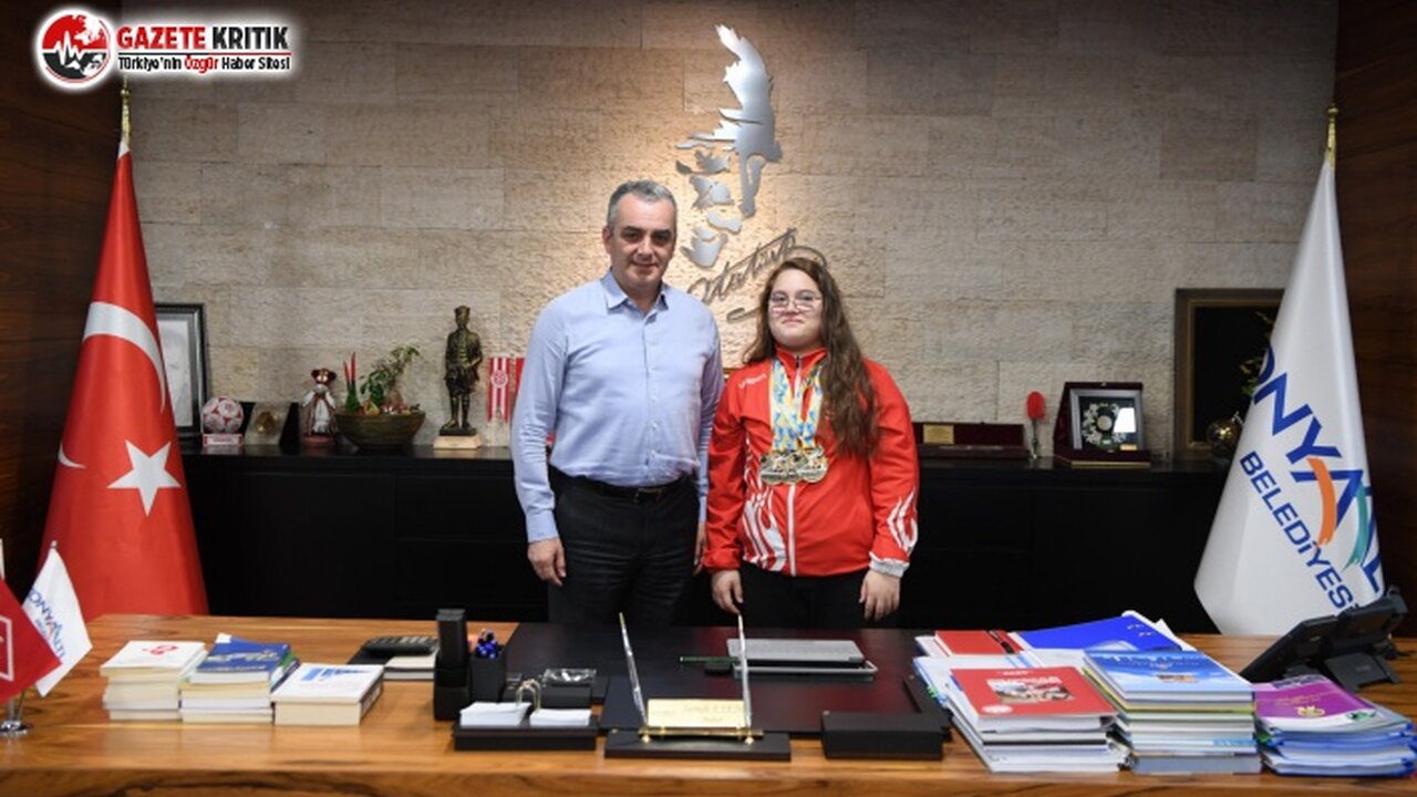 İsrail'in Eilat şehrinin ev sahipliği yaptığı Yıldızlar ve 15 Yaş Altı Avrupa Halter Şampiyonası'nda Avrupa Şampiyonu olan Aleyna Kaymaz, Konyaaltı Belediye Başkanı Semih Esen’i makamında ziyaret etti. 83 kilo koparma, 103 kilo silkme ve toplamda Avrupa rekoru ve Avrupa Şampiyonu olan Aleyna Kaymaz ve babası Burhan Kaymaz’ı ağırlamaktan büyük onur duyduğunu dile getiren Başkan Semih Esen, genç yaşta üç ayrı madalya ile ülkemize dönen Aleyna Kaymaz’ı yürekten tebrik ettiğini bildirdi.