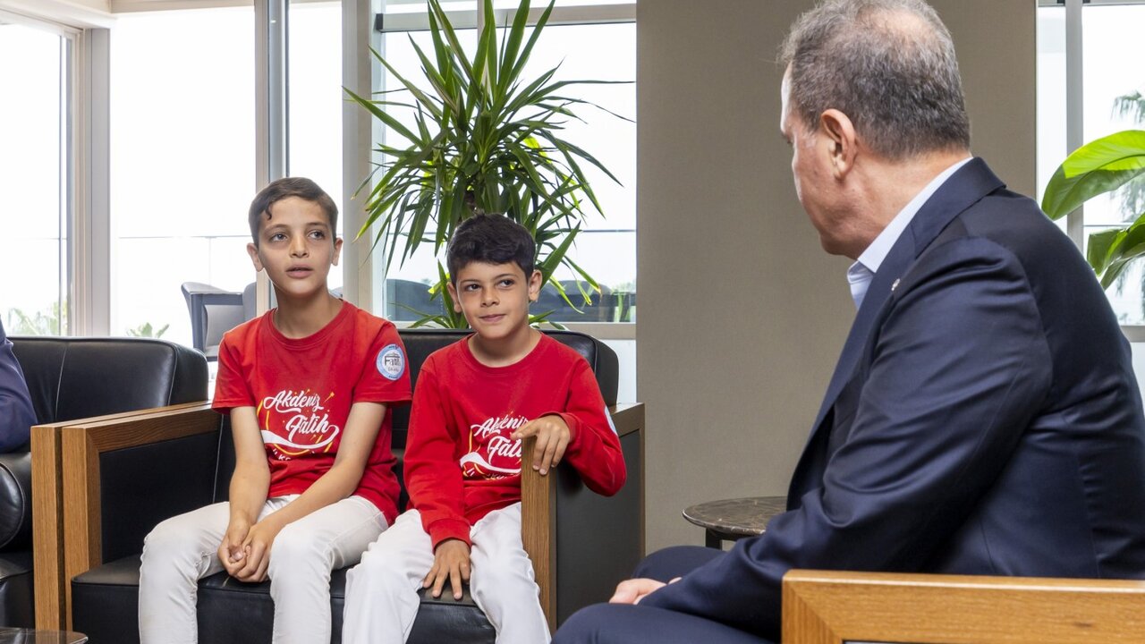 23 Nisan Ulusal Egemenlik ve Çocuk Bayramı’nın sevincini yaşayan öğrenciler Mersin Büyükşehir Belediye Başkanı Vahap Seçer’i ziyaret etti. Ziyarette; Akdeniz İlçe Milli Eğitim Müdürü Saim Demir, Akdeniz Fatih İlkokulu Müdürü Dilek Göl ve okulun öğrencileri İlayda Özyar, Yasin Çiftçi, Yasmin Almansour, Çınar Yardımcı ve öğretmenleri Gamze Berk yer aldı.