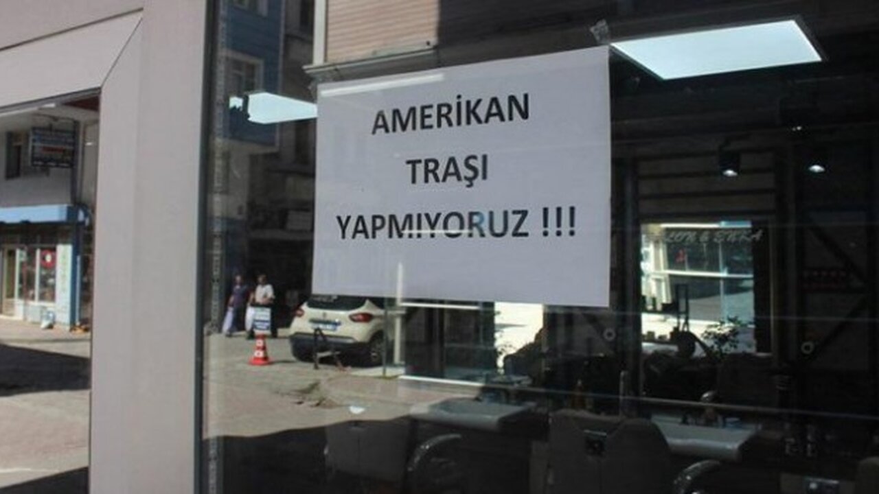 Amerika ile Türkiye arasında yaşanan gerginlik nedeniyle Amerika’ya tepki gösteren Ünye ilçesindeki 10 erkek berberi, ‘Amerikan tıraşı’ yapmama kararı alıp işyerlerinin camlarına ‘Amerikan tıraşı yapmıyoruz’ yazısı astı. Müşteriler de alınan bu karar destek verdi.