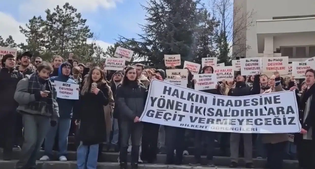 Bilkent Üniversitesi öğrencileri, İstanbul Büyükşehir Belediyesi'ne (İBB) yönelik başlatılan soruşturma sonucu İBB Başkanı Ekrem İmamoğlu'nun da aralarında bulunduğu 106 kişi hakkındaki gözaltı kararını protesto etti. Yapılan açıklama, "Seçme seçilme hakkı dahil siyasal özgürlüklerimizi kazanmanın tek yolunun, AKP'ye ve temsil ettiği düzene karşı mücadele etmekten geçtiğinin farkındayız. Halkın iradesine yönelik saldırılara geçit vermeyeceğiz" denildi.