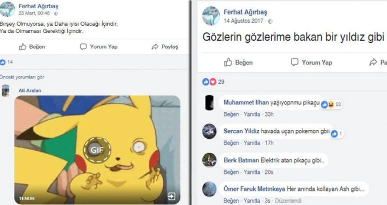 Ferhat Ağırbaş'ın Facebook profilinde Pokemon severlerin hala paylaşım yaptığı ortaya çıktı. Ferhat'ın yazdığı duygusal mesajlara da “Pokemon ferhat uçuyooo” diye yorum yapıldı, Ferhat'ın yazdığı kızgın mesajlara da…