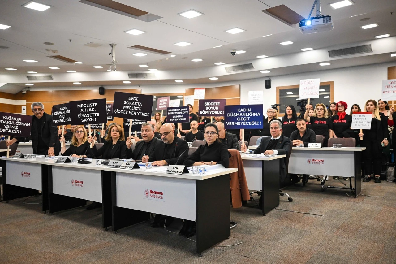 Toplantıda, İzmir Büyükşehir Belediye Meclisi'nde AK Partili Meclis Üyesi Erdal Seyitler’in, CHP Grup Sözcüsü Yağmur Özkan'a yönelik küfürlü söylemine karşı gösterilen tepkiler de gündeme taşındı. CHP Bornova Kadın Kolları ve Bornovalı kadınlar, üzerlerinde “Güç sende” yazılı tişörtlerle mecliste sessiz bir eylem gerçekleştirdi.