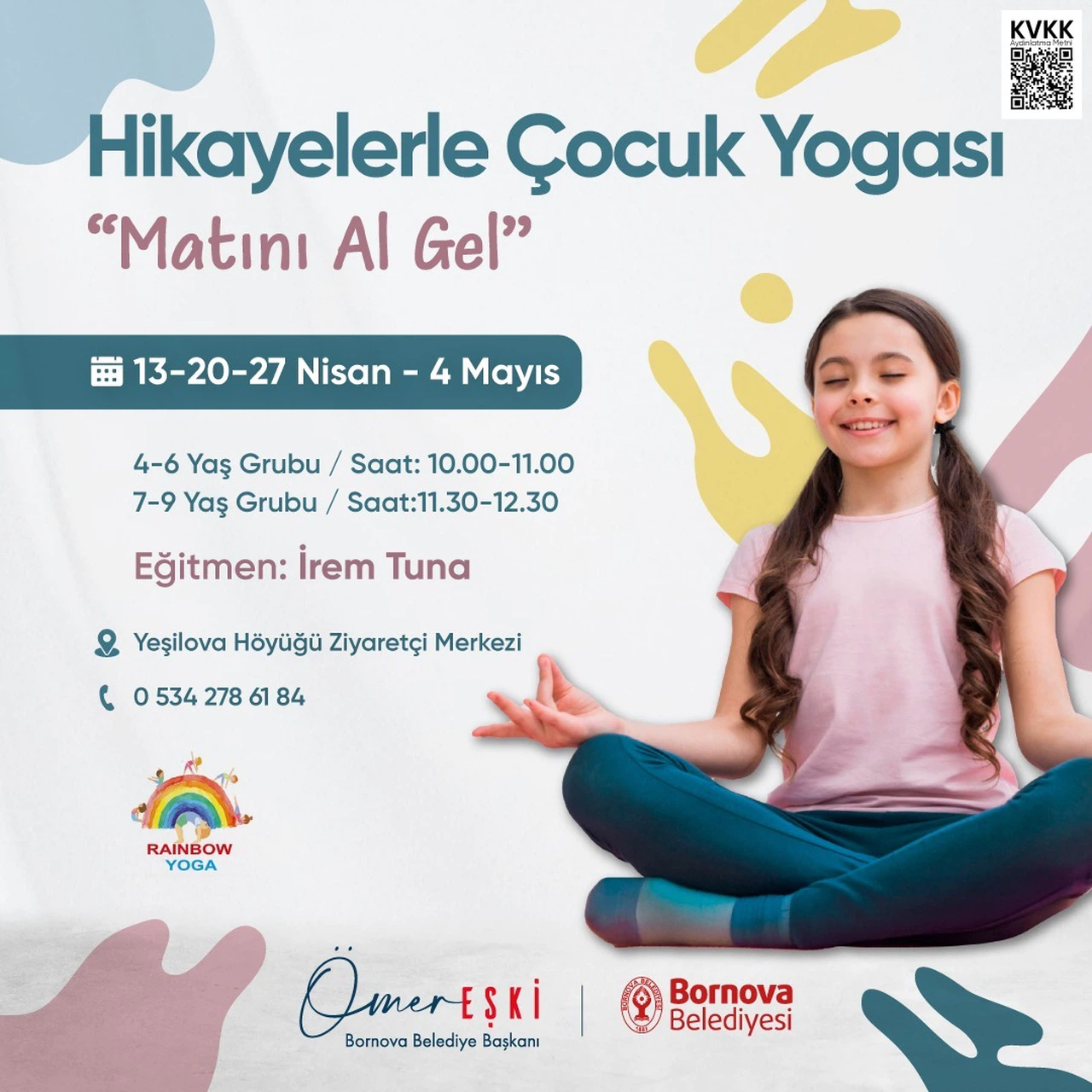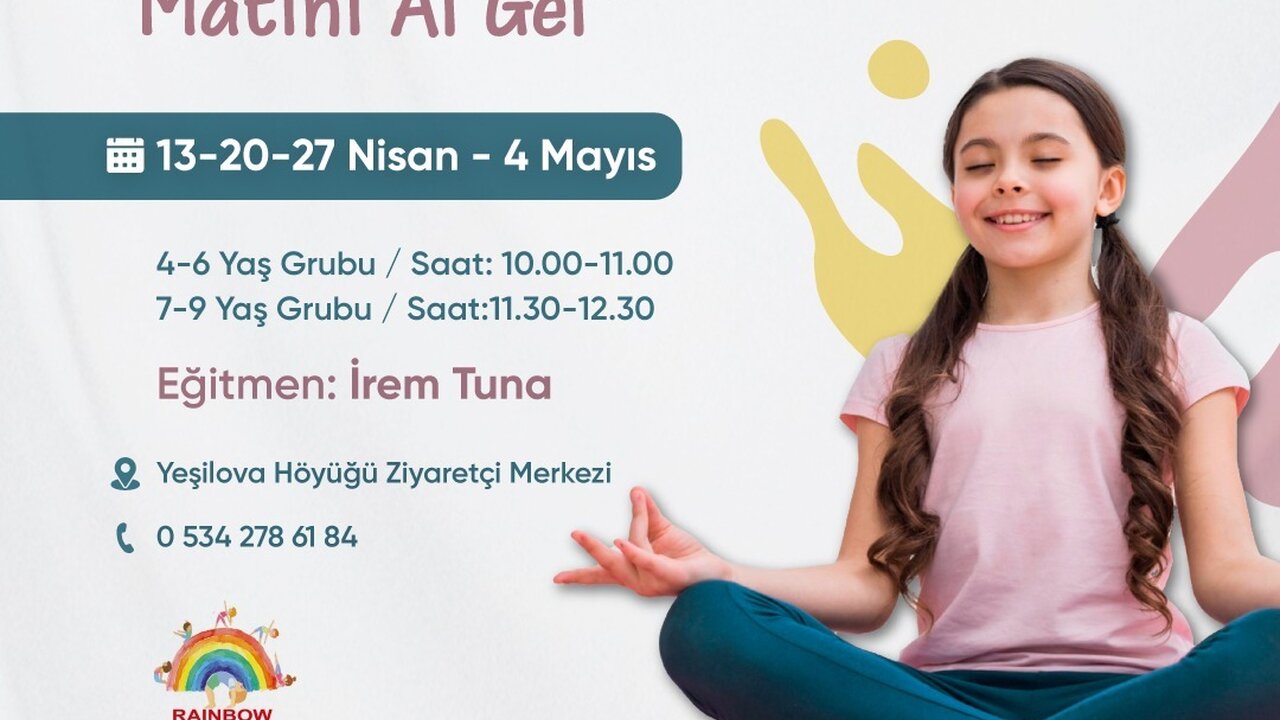 Bornova Belediyesi, çocukların hem fiziksel hem de zihinsel gelişimine katkı sağlamak amacıyla yepyeni ve yaratıcı bir etkinliğe imza atıyor. “Hikâyelerle Çocuk Yogası – Matını Al Gel” etkinliği, Nisan ayı boyunca her cumartesi Yeşilova Höyüğü Ziyaretçi Merkezi’nde gerçekleşecek.