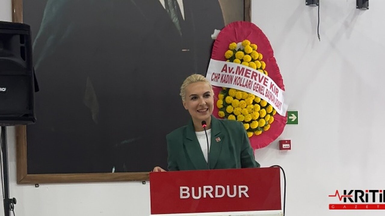 Partisinin Burdur İl Kadın Kolları Kongresi'nde konuşan CHP Kadın Kolları Başkan Adayı Merve Kır, “Birlik ve beraberliğimizin simgesi olarak, her bir kadınımızın sesi olacağımıza ve sorunlarını çözüme kavuşturmak için durmadan çalışacağımıza söz veriyorum. Hep birlikte, daha adil, daha eşit ve daha demokratik bir Türkiye için mücadele edeceğiz. Bu yolda, her birinizin desteğine ve katkısına ihtiyacımız var. Gücümüzü birliğimizden alıyoruz. Beraber yürüdüğümüz bu yolda, tüm kadınlarımızı kucaklayarak, daha güçlü bir kadın hareketi yaratacağımıza inanıyorum. Unutmayalım ki, birlikte daha güçlüyüz, birlikte başaracağız!” dedi