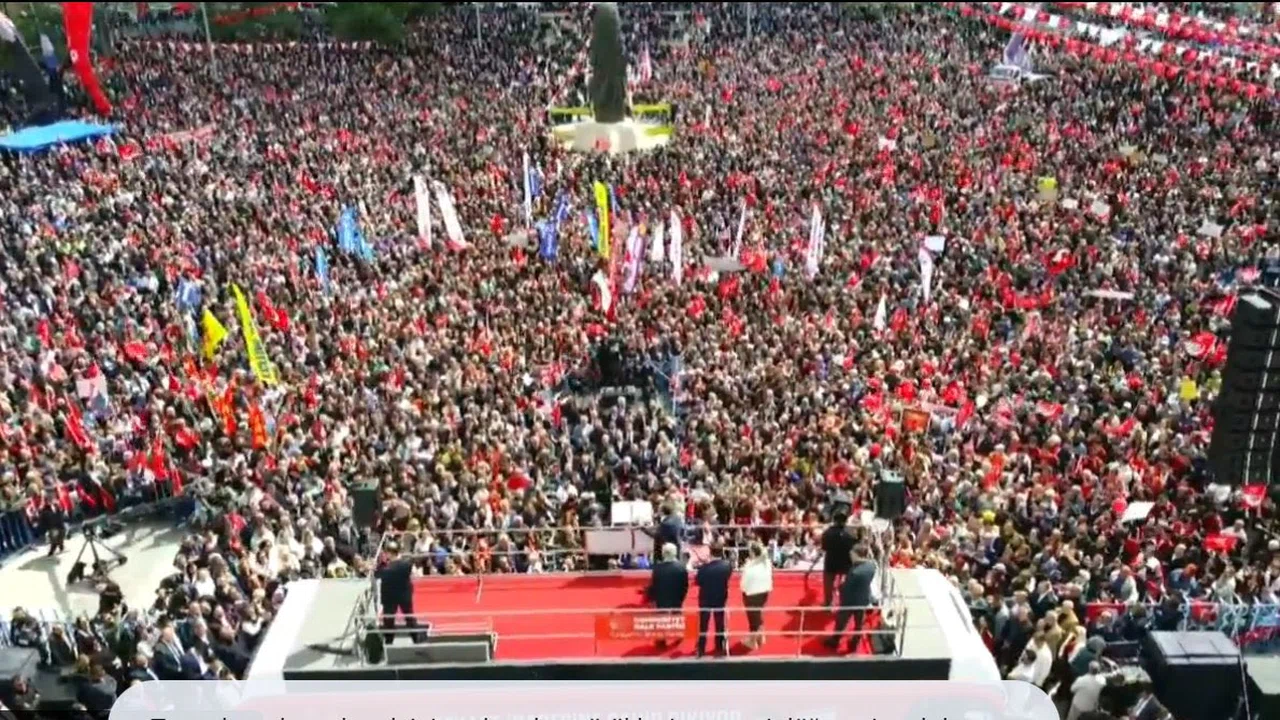 Burada Konya’nın pırıl pırıl gençleri var. Bunları duyunca bağırıyorlar, seslerini duyurmak istiyorlar. Belki bu slogana sadece CHP’liler değil. Hiç şüphe yok ki il başkanım da bahsediyor, bu meydanda sadece CHP’liler yok. Artık Tayyip Bey’in bile dolduramayıp kaçtığı bu meydanda, Konya’nın vicdan sahibi bütün demokratları var. Sosyal demokratlarla muhafazakar demokratlar kol kola. Milliyetçi demokratlarla Kürt demokratlar yan yana. Burada her partiden, her görüşten, tüm Konya’dan vicdan sahibi güzel insanlar var ve gençler diyor ki, 'Hak, hukuk, adalet.' Buradan, 45 gün sonra, Ekrem Başkan hem ailesinin hem eşinin dostunun gözüne bakabilirken, meydanlar 100 binler, milyonlar olup ona destek olurken, bugün bu iftiraların altında kalıp da utanmayanlar var. Bakın bir anket yapıldı. Bu iddialara inananlar sadece yüzde 25. Dört kişiden biri. Dokuz ankette ortalama yüzde 26,5. En yüksek olanında yüzde 29, bilemedin yüzde 30. Milletin, 10 kişiden 2,5 kişinin, zorlarsan üç kişinin inanıp, gerisinin inanmadığı bu iddialardan öyle rezil iftiralar duyduk ki insan diyor ki: 'Bu nasıl terazi, kefesi yok; bu nasıl harman, mahsulü yok.'"