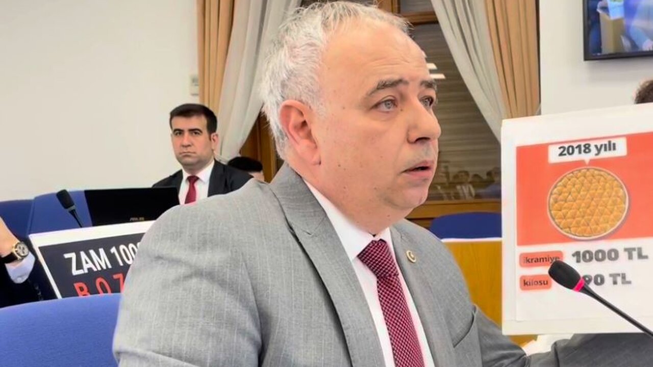 Diyanet’in fetvası var. Diyanet’e göre emekliye fitre verilebiliyor. Yani devlet şunu yapsa, dese ki; 'Ben emeklime bayram ikramiyesi vermeyeceğim, onun yerine fitre vereyim. Diyanet de böyle bir fetva vermiş. Fitre vereyim' demiş olsa fitrenin bu seneki bedeli Diyanet’in hesaplamasına göre 180 lira; bir aylık fitre bedeli de 5 bin 400 lira. Yani devlet 'Ben bayram ikramiyesi vermeyeceğim, fitre vereceğim dese 5 bin 400 lira vermesi lazım ancak karşımıza gelen rakam 4 bin lira. Daha ne olsun? Daha ne olsun diye baktığımız zaman çeşitli hesaplamalar yapılıyor. İşte 2018 yılında bin lirayla neler alınabiliyor? Bugün 4 bin lirayla neler alınabiliyor? Bunların mukayesesi yapılmakta. Genelde biz altın hesabı yapıyorduk fakat iktidar temsilcileri bize altın hesabı yaptığımız zaman kızıyor. O zaman bayram deyince aklımıza ne geliyor? Çocukluğumuzdan beri şeker gelir, baklava gelir, tatlı gelir. 2018 yılında bin lira bayram ikramiyesini alan bir emeklimiz baklavacıya gittiği zaman -90 liraymış o zaman kilosu- 11 kilo baklava alıyormuş ikramiyesiyle, üzerine para da kalıyormuş. Bugün gelinen noktada baklavanın kilosu bin lira, dilimi 90 lira. Şu anda dilim baklava satılıyor 90 liradan. Yani 2018 yılında kilosu 90 liraymış, bugün dilimi 90 lira hâline gelmiş. İkramiye 4 bin liraya çıktı. Kilosu bin liradan hesapladığımız zaman 4 kilogram ancak baklava alabiliyor. 2018 yılında 11 kilogram alırken bugün 4 kilogram alıyor. Peki, aradaki 7 kilogram nerede? Esas sormamız gereken soru o. Yani geçmişte, 2018'de emeklilerimizin tohumlarının kursağındaki o baklava, 7 kilogram baklava nerede? Torunlar yemiyor, onu biliyoruz.