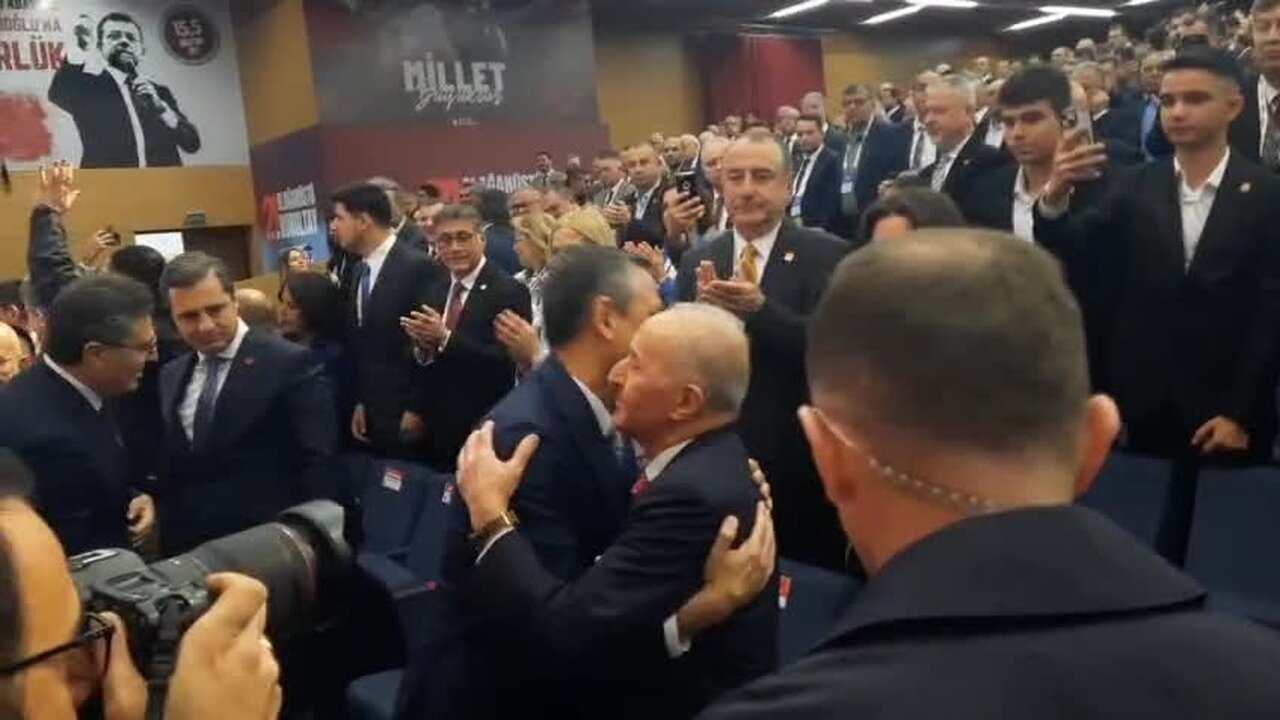 CHP Genel Başkanı Özgür Özel salona girişinde eski genel başkanlar Hikmet Çetin, Altan Öymen ile eski SHP Genel Başkanı Murat Karayalçın ile kucaklaştı. Eski CHP Genel Başkanı Kemal Kılıçdaroğlu, salona Genel Başkan Özel'den sonra girdi.