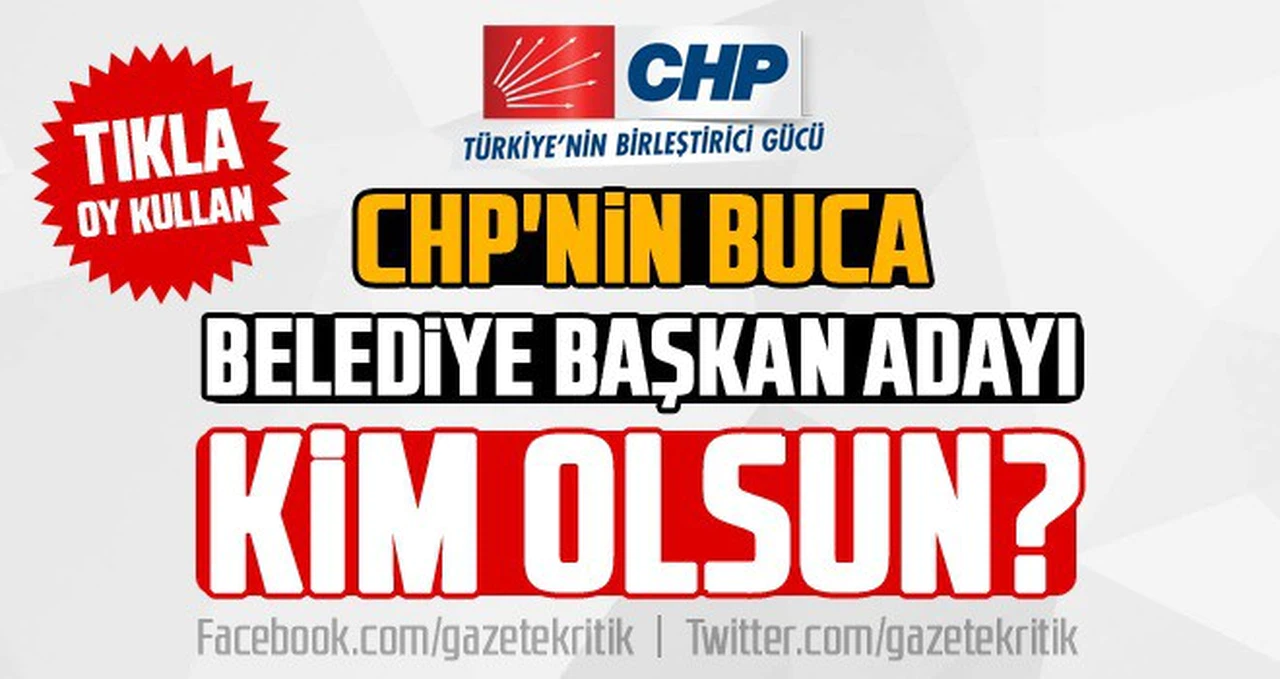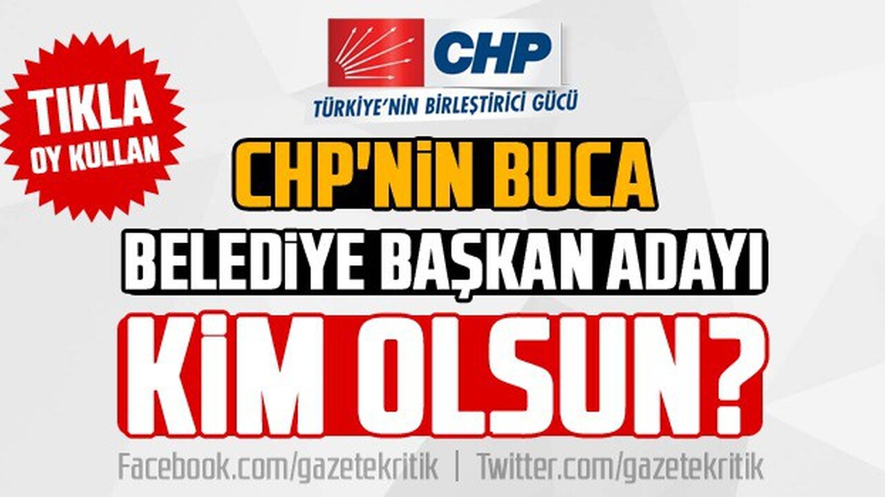 Gazetekritik ve Kritikanket işbirliği ile yurttaşlara CHP'nin Buca Başkan Adayı olarak kimi görmek istediklerini soruyoruz. Sizde benim oyum kritik diyorsanız ankete katılıp oyunuzu kullanaabilirsiniz.