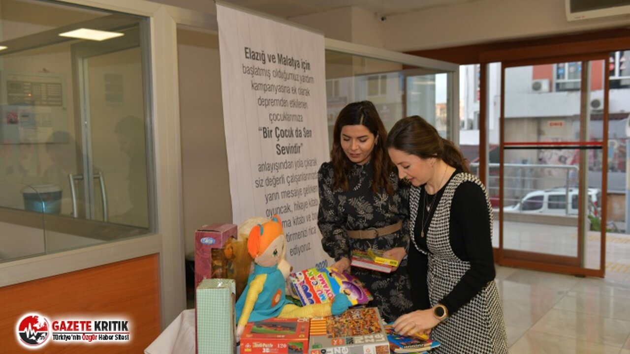 Başlatılan kampanyaya büyük ilgi gösteren personel deprem bölgesindeki çocuklara gönderilmek üzere işe gelirken oyuncak, hikaye kitabı, boyama kitabı ve boya getirdiler.