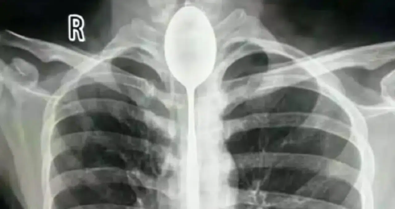 İsminin Zhang olduğu öğrenilen şahıs, ‘yapabildiğini göstermek için’ 20 santimlik bir kaşığı yuttu ve uzun süre bu şekilde yaşadı. 20’li yaşlarında olan Zhang, göğsünden yumruk yiyene kadar boğazındaki kaşıkla ilgili herhangi bir problem yaşamadığını belirtti.