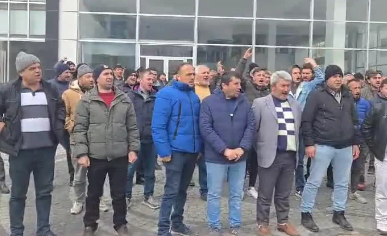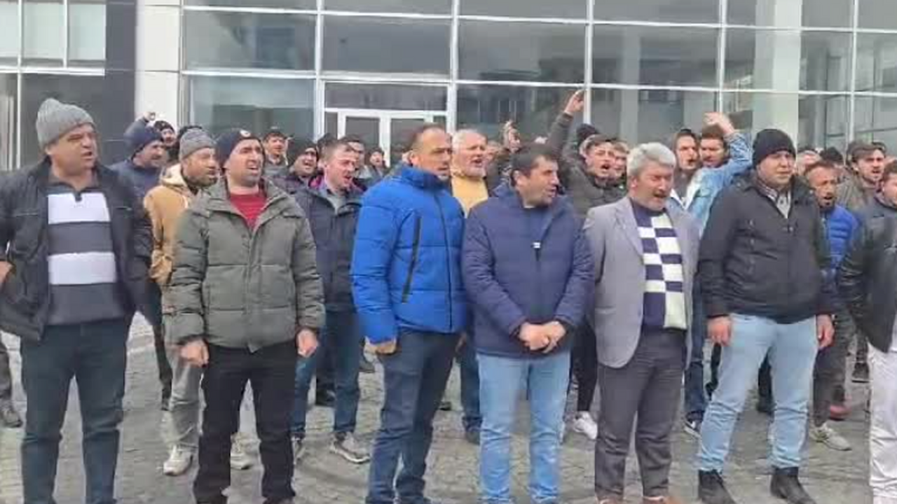 Türkiye Maden İşçileri Sendikası (Türk Maden-İş) üyesi işçiler maaşları için bugün de holding önünde toplandı.