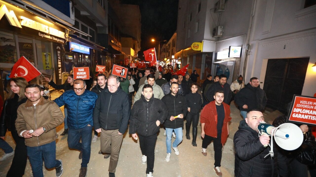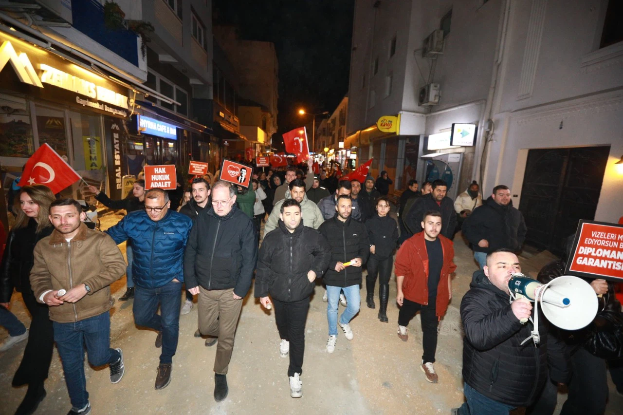 Cumhuriyet Halk Partisi Efes Selçuk İlçe Örgütü’nün “Adalet için buluşuyoruz” çağrısıyla toplanan partililer ve yurttaşlar önce İstasyon Meydanı’nda kurulan dev ekranda Cumhuriyet Halk Partisi (CHP) Genel Başkanı Özgür Özel’in Saraçhane’den yaptığı konuşmayı dinlediler. Kadınlar ve gençlerin yoğun olduğu topluluk İstasyon Meydanı’ndan Atatürk Anıtına slogan atarak yürüdü.