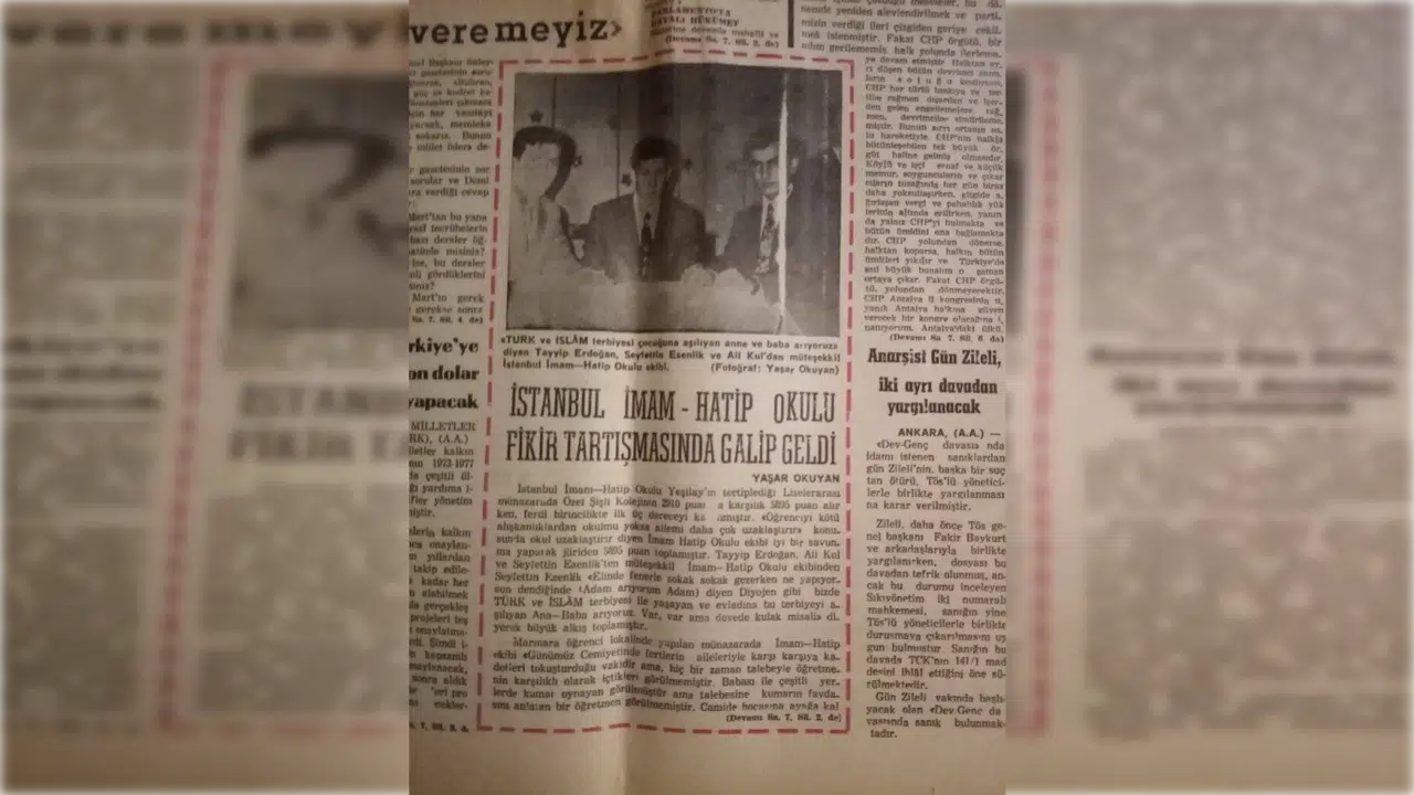 Bizim Anadolu gazetesi, 53 yıl önce Recep Tayyip Erdoğan ve iki okul arkadaşının katıldığı "Liselerarası Münazara" yarışmasında birincilik kazandıklarını duyurdu. Haberin başlığı "İstanbul İmam Hatip Okulu fikir tartışmasında galip geldi" olarak verildi.