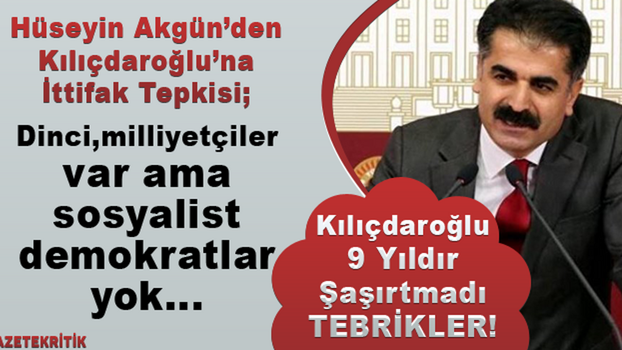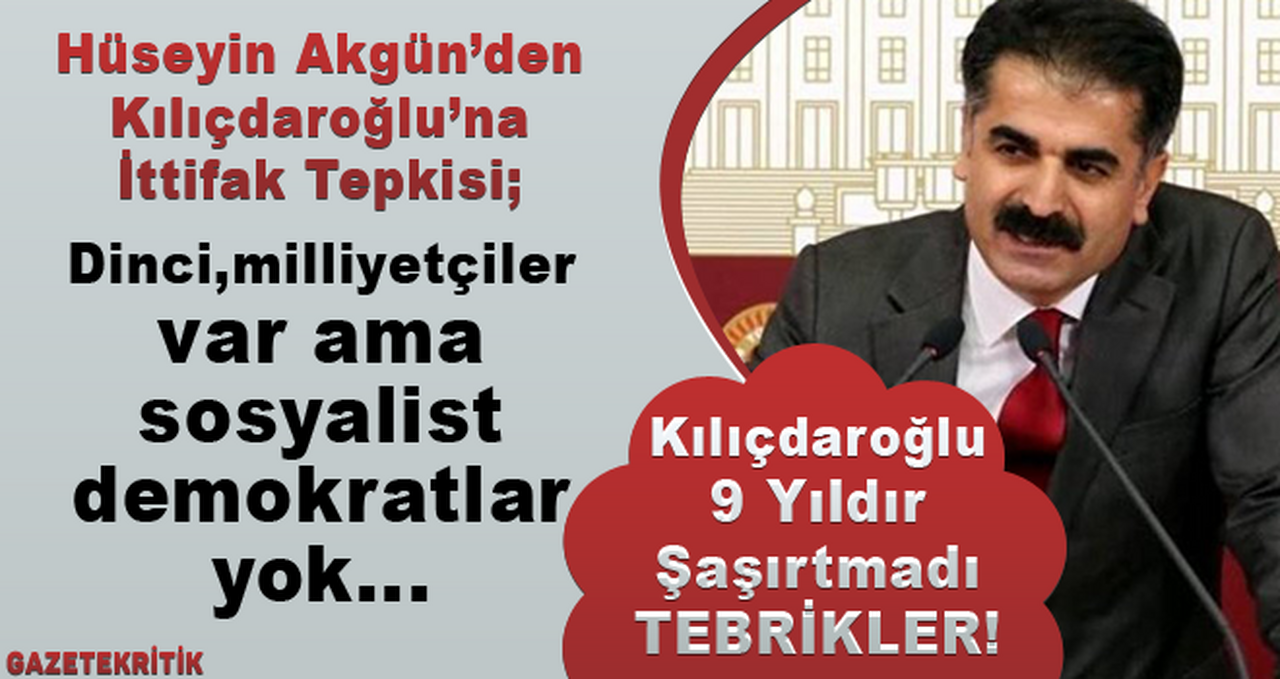 CHP, İYİ Parti, Saadet Partisi ve Demokrat Parti arasında uzun süredir devam eden görüşmeler sonuca ulaştı. Kimi isimler bu ittifakı olumlu karşılarken kimileri ise sol partilerin dışarıda bırakılmasını eleştirdi. Bu eleştirilerden biride CHP Tunceli Eski Milletvekili Hüseyin Aygün'den geldi. Aygün, mesajında eleştirisinin sonunda "Kılıçdaroğlu 9 yıldır şaşırtmıyor. Tebrikler" diye yazdı.