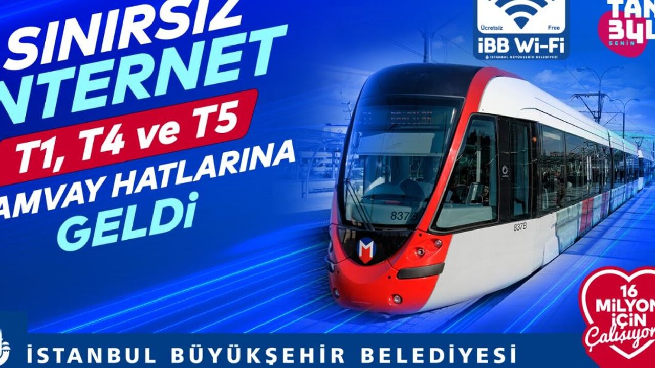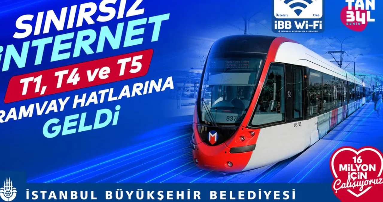 İstanbul Büyükşehir Belediyesi (İBB), ücretsiz ve sınırsız interneti tramvaylara taşıyor. İBB Wi-Fi hizmeti, T1 (Bağcılar-Kabataş), T4 (Topkapı-Mescid-i Selam) ve T5 (Cibali-Alibeyköy Cep Otogarı) tramvay hatlarında devreye alındı.