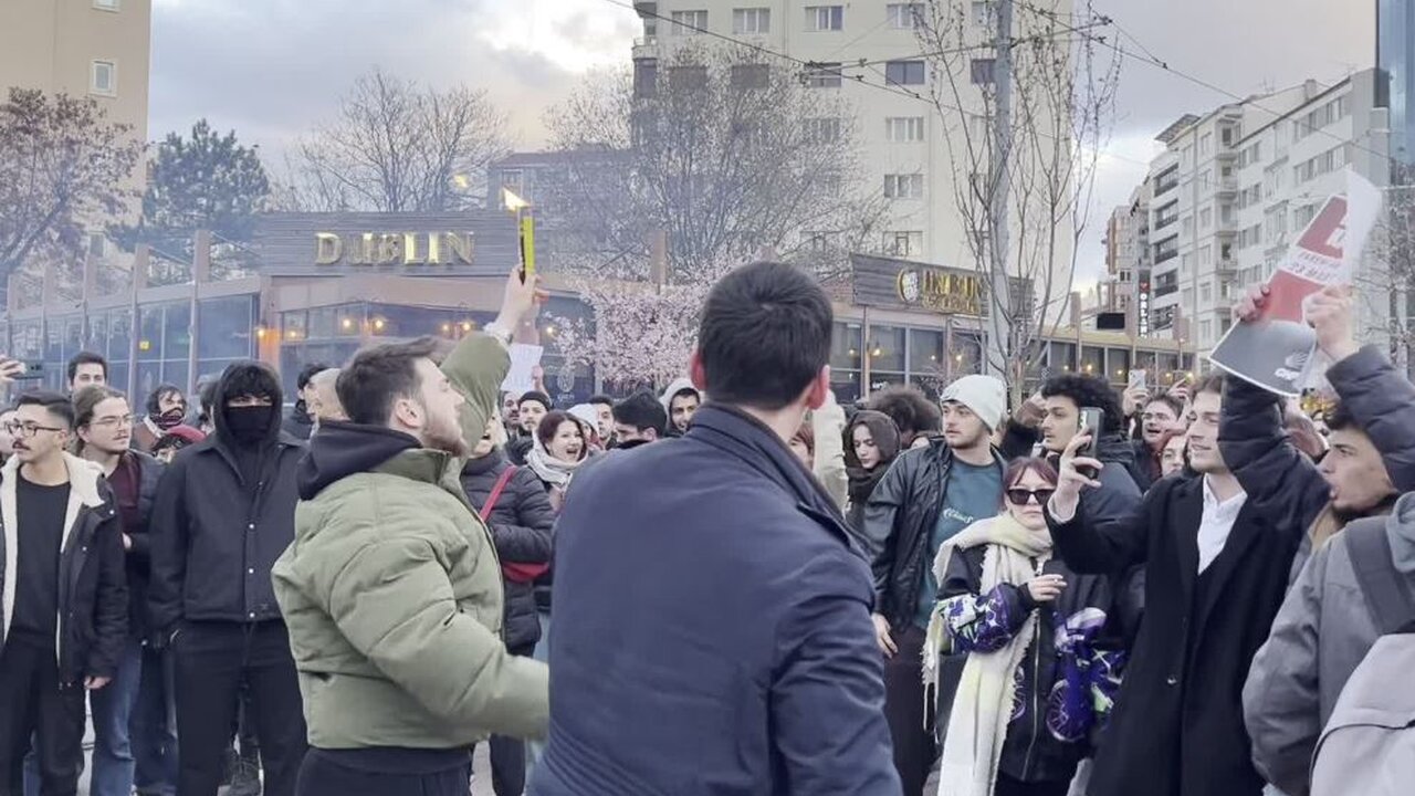 İmamoğlu’nun gözaltına alınmasına tepki gösteren bir grup genç dün akşam saatlerinde Ulus Anıtı önünde toplandı. Buradan İmamoğlu’na destek yürüyüşü yapmak isteyen gençlerin önüne polis tarafından barikat kuruldu. Öğrencilerle emniyet güçleri arasında arbede yaşanırken, araya avukatların da girmesiyle ortam sakinleşti ve barikat açıldı.