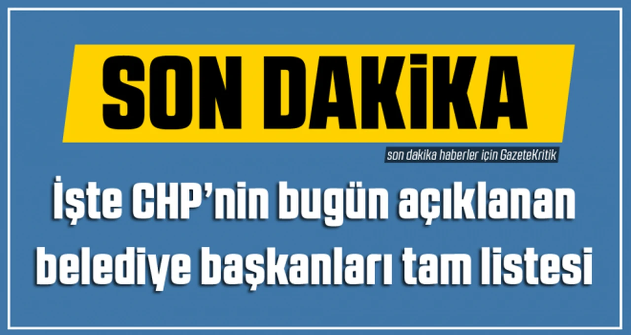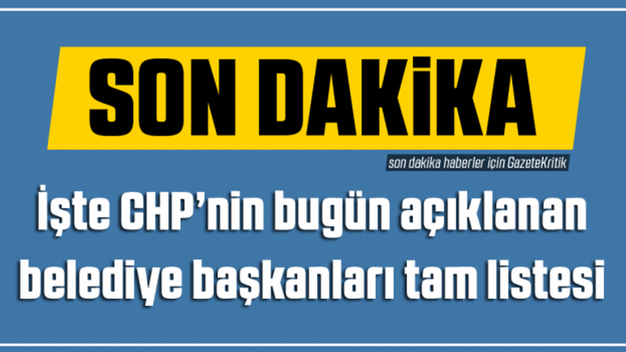 İşte CHP’nin bugün açıklanan belediye başkanları tam listesini yayınlıyoruz. 1 büyükşehir ve 10 belediye olmam üzere 140 belediye başkan adayı belirlendi. Aday tespit yöntemi olarak eğilim yoklamasıda eklendi.
