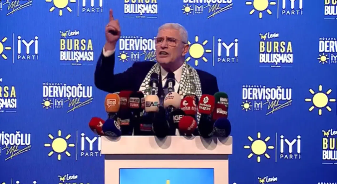 Cumhurbaşkanı Recep Tayyip Erdoğan’a da seslenen Dervişoğlu, “'Yeni Türkiye, Eski Türkiye' çıkardınız. 25 yıldır yönetiyorsunuz. Türk siyasetinin bir tek eskisi vardır o da Recep Tayyip Erdoğan’dır.” ifadelerini kullandı. İYİ Parti Genel Başkanı Müsavat Dervişoğlu sözlerini, “Türkiye’yi, Türksüzleştirmeyeceğiz. Türk vatanını yıktırmayacağız. Ne mutlu Türküm diyene!” ifadeleri ile noktaladı.