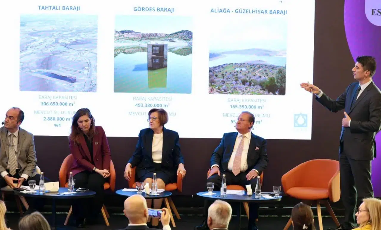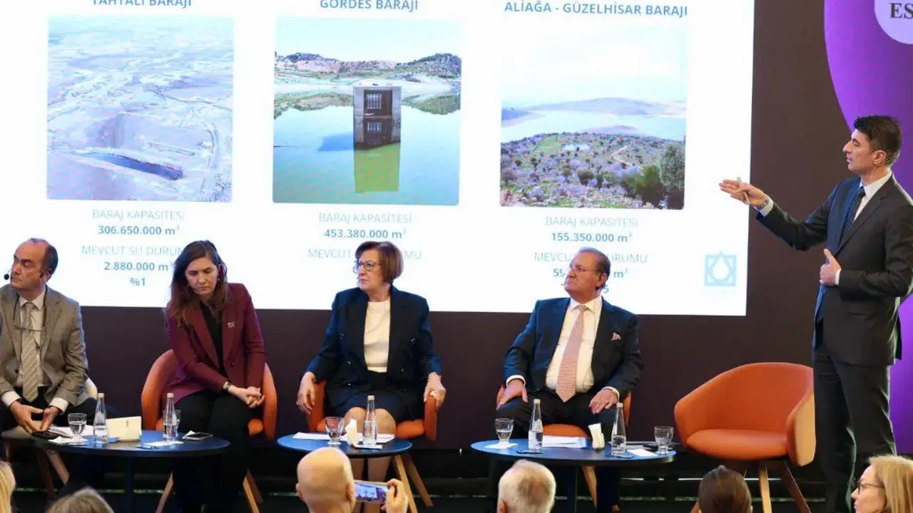 Ege Bölgesi Sanayi Odası (EBSO), İzmir Ticaret Borsası ve Ege Sanayicileri ve İş İnsanları Derneği (ESİAD) tarafından düzenlenen Su Konferansı kapsamında gerçekleştirilen “Kentlerde Su” başlıklı oturumda, artan kuraklık, azalan yağışlar ve nüfus baskısı altında kentlerin su yönetimi masaya yatırıldı. Oturumda, ulusal su verimliliği politikaları, yerel yönetimlerin sorumlulukları ve İzmir’in mevcut su arzına ilişkin çarpıcı veriler paylaşıldı. Oturumun moderatörlüğünü İzmir Yüksek Teknoloji Enstitüsü (İYTE) Çevre Mühendisliği Bölümü Öğretim Üyesi Prof. Dr. Orhan Gündüz üstlendi. Panelde, Tarım ve Orman Bakanlığı Su Verimliliği Daire Başkanı Aslıhan Korkmaz, İZSU Genel Müdürü Gürkan Erdoğan, Swissotel Büyük Efes İzmir Genel Müdürü Rıza Elibol ile Epig Mimarlık Kurucusu ve BASİFED Yönetim Kurulu Başkanı Semiha Güneş konuşmacı olarak yer aldı.
