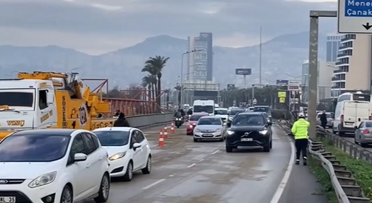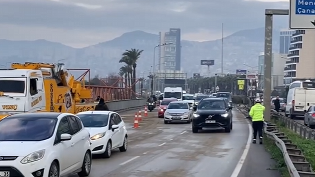 İzmir'in Bayraklı ilçesinde sürücüsünün direksiyon hakimiyetini kaybetmesi sonucu bariyerlere çarparak karşı şeride geçen mazot yüklü tanker taksiye çarptı. Taksi içerisindeki bir yolcunun yaralandığı kazada, devrilen tankerin yolu kapatması nedeniyle İzmir trafiği durma noktasına geldi.