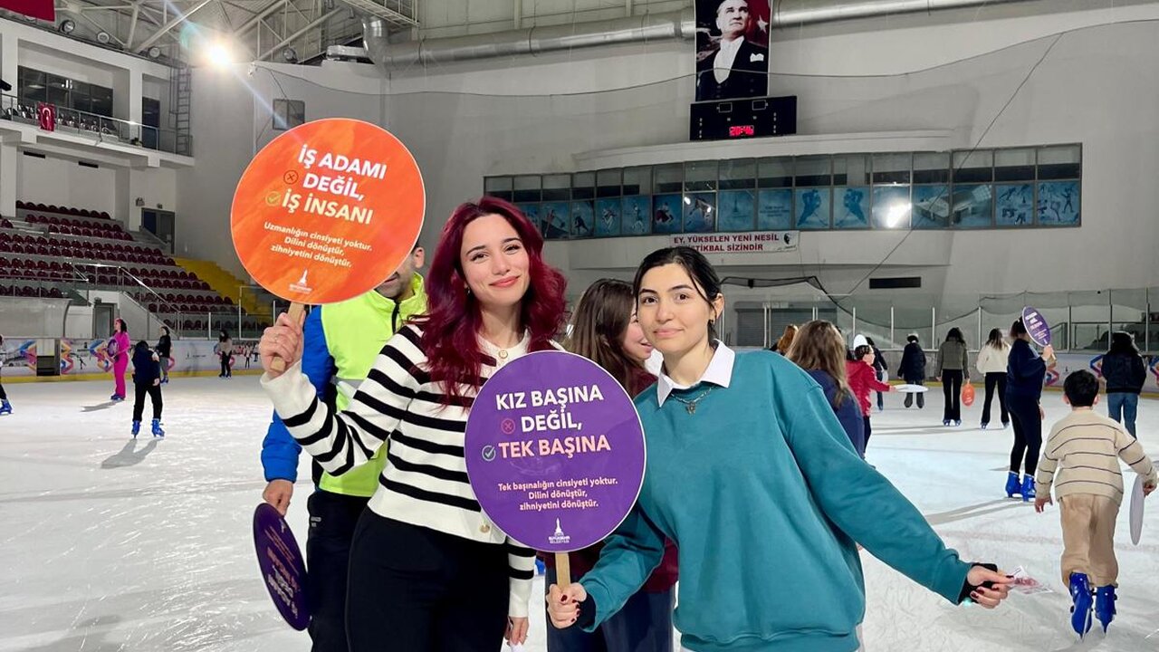 İzmir Büyükşehir Belediyesi, 8 Mart Dünya Emekçi Kadınlar Günü'nü "Kadın Her Yerde" sloganı ile çok sayıda farklı etkinlikle kutluyor. Program kapsamındaki ilk organizasyon, Bornova Aşık Veysel Rekreasyon Alanı'nda yer alan Buz Sporları Salonu'nda gerçekleştirildi. Buz pisti 16.00-16.45 ve 20.00-20.45 saatleri arasında kadınlara özel hizmet verdi. Ücretsiz seansta profesyonel eğitmenlerin gözetiminde buzda kaymayı deneyimleyen kadınlar müzik ve ışık gösterileri eşliğinde keyifli bir gün geçirdi. Kadınlar, organizasyon sırasında toplumsal cinsiyet eşitliğine vurgu yapan dövizler taşıdı.