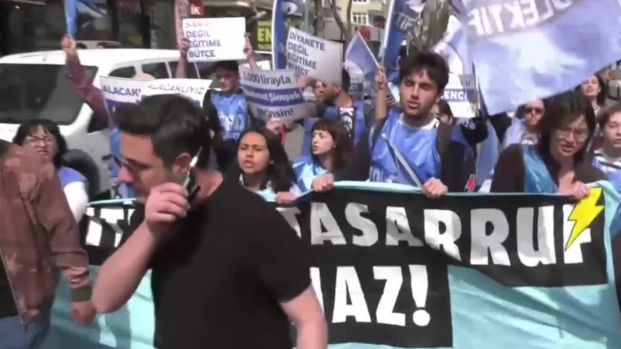 Farklı illerden gelen Öğrenci Kolektifleri üyesi bir grup üniversite öğrencisi, Bişkek Caddesi'nde toplandı. "Müşteri değiliz, öğrenciyiz", "3 bin liraya Mehmet Şimşek geçinsin", "Diyanete değil, eğitime bütçe" yazılı dövizler taşıyan öğrenciler, buradan "Eğitimde tasarruf olmaz, alacaklıyız, alacağız" sloganlarıyla Hazine ve Maliye Bakanlığı'na doğru yürümek istedi. Üniversite öğrencilerine Ulaştırma ve Altyapı Bakanlığı önünde polis tarafından müdahale edildi. Yürümeleri engellenen öğrenciler, burada gözaltına alındı.