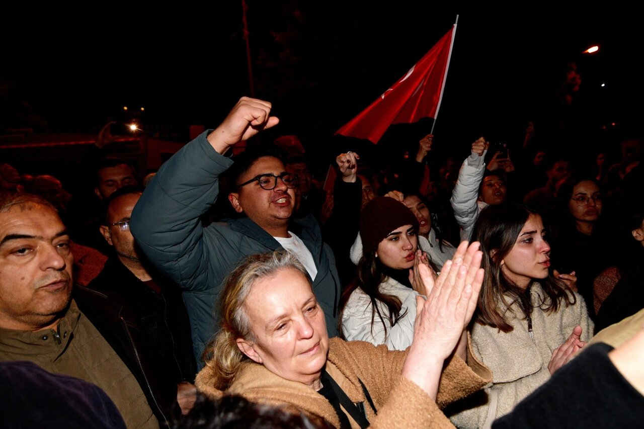 Bornova halkı, gece boyunca Türk bayrakları ve CHP flamalarıyla nöbet tutarken, alandaki coşku ve kararlılık dikkat çekti. Ömer Eşki ve CHP Bornova örgütü, halkın desteğiyle mücadeleyi sürdüreceklerini vurguladı.