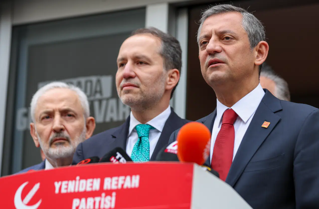 CHP Genel Başkanı Özgür Özel, siyasi parti ziyaretleri kapsamında Yeniden Refah Partisi Genel Başkanı Fatih Erbakan ile görüştü. Özel'e Genel Sekreter Selin Sayek Böke, Genel Başkan Yardımcısı Ensar Aytekin ve Sevgi Kılıç eşlik etti. Erbakan ve beraberideki heyet Özel'i kapıda karşıladı. Yeniden Refah Partisi Genel Merkezinde yapılan görüşmenin ardından Özel ile Erbakan açıklamalarda bulundu.