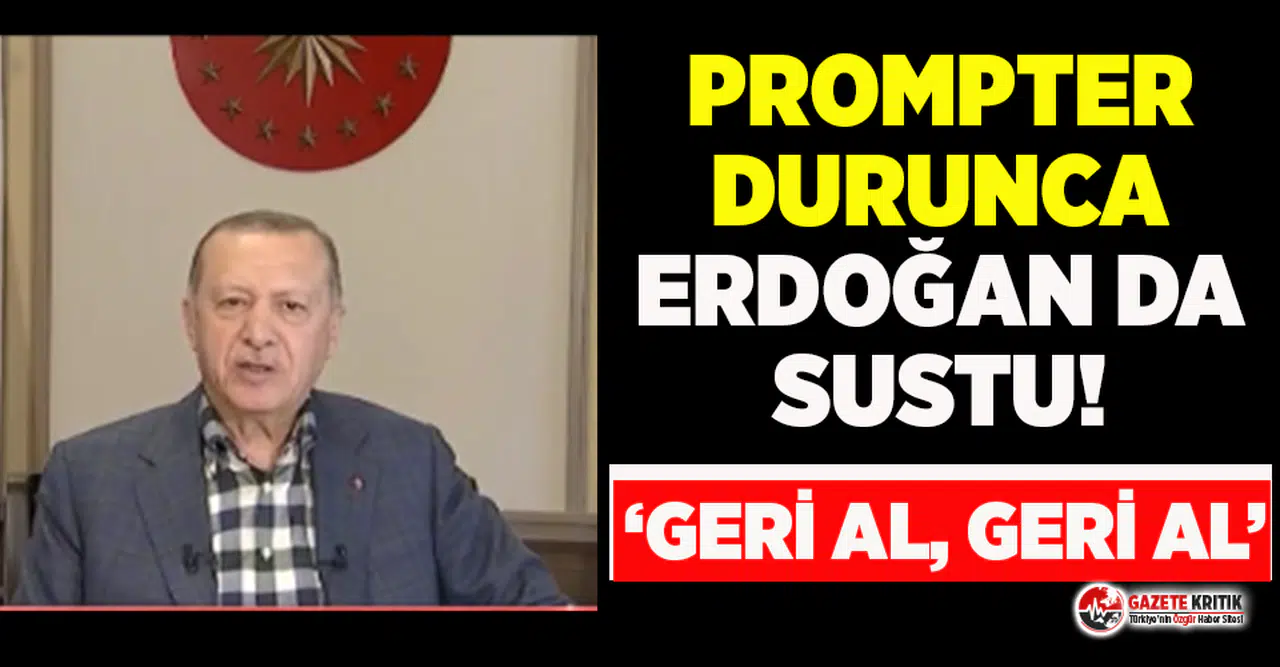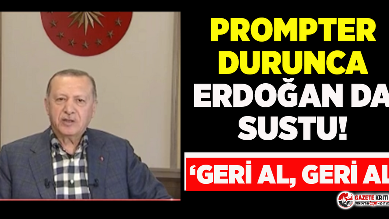 Cumhurbaşkanı Erdoğan’ın konuşması sırasında ilginç bir an yaşandı. Erdoğan’ın konuşması prompterın bir anlığına durması nedeniyle aksadı. Erdoğan, kamera arkasında çalışan ekibe “Geri al” şeklinde uyarı yaptı. Sonrasında ise Erdoğan, takıldığı yerden konuşmasına devam etti.