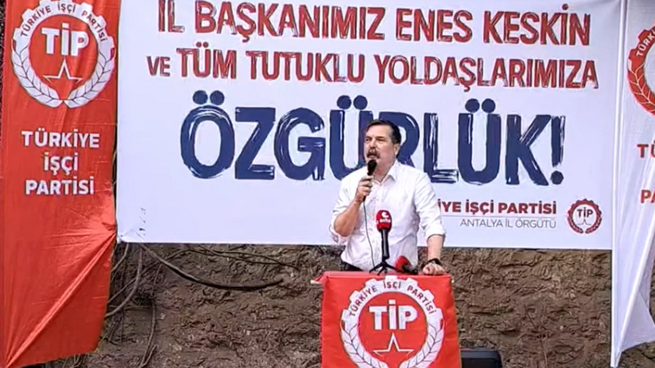 Türkiye İşçi Partisi (TİP) Genel Başkanı Erkan Baş, sendikalara seslenerek, "Antalya'dan, tutsak yoldaşlarımın yanından bütün siyasi partilere sesleniyorum, mutlaka birleşmemiz lazım. Bütün sendikalara sesleniyorum mutlaka yan yana gelmeliyiz. İşçi örgütleri, emek örgütleri, meslek odaları, demokratik kitle örgütleri her yerde bu zalim iktidara karşı, bu zulüm düzenine karşı halkın birliğini sağlamak dışında hiçbir önceliğimiz yoktur. Bu iktidardan kurtulmak için, adalet için, demokrasi için, özgürlük için bütün yurttaşlarımızı yan yana gelmeye çağırıyoruz" dedi.