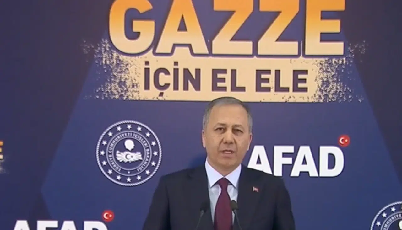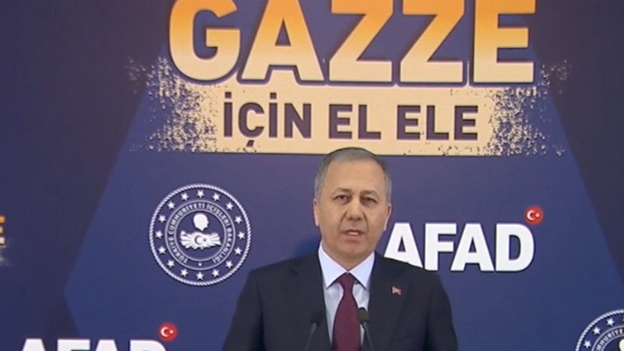 Bakan Ali Yerlikaya, AFAD koordinasyonunda, STK'larla birlikte başlatılan "Gazze İçin El Ele" yardım kampanyasıyla Filistin'e destek sağlanacağını vurguladı.