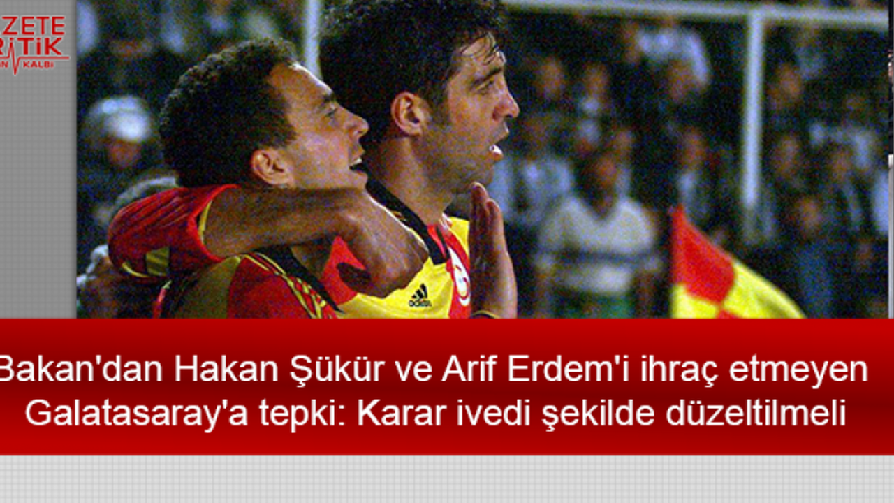 Bakan'dan Hakan Şükür ve Arif Erdem'i ihraç etmeyen Galatasaray'a tepki: Karar ivedi şekilde düzeltilmeli