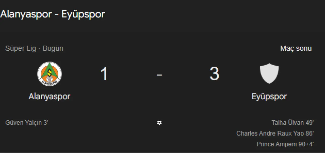 Bu sonuçla Eyüpspor deplasmanda önemli bir galibiyet alırken, Alanyaspor evinde kritik puan kaybı yaşadı. Maçın genelinde fiziksel mücadele, hızlı kanat organizasyonları ve savunma arkası koşular belirleyici oldu.